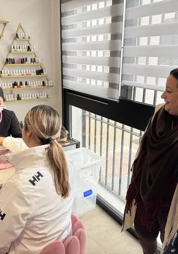 La alcaldesa accidental, María del Mar Collado, junto al teniente de alcalde de Mercados, David Ramos, han realizado una visita al salón de manicura Sara Calvente, que abre de la mano de esta sanroqueña, afincada en la Estación desde hace 7 años.