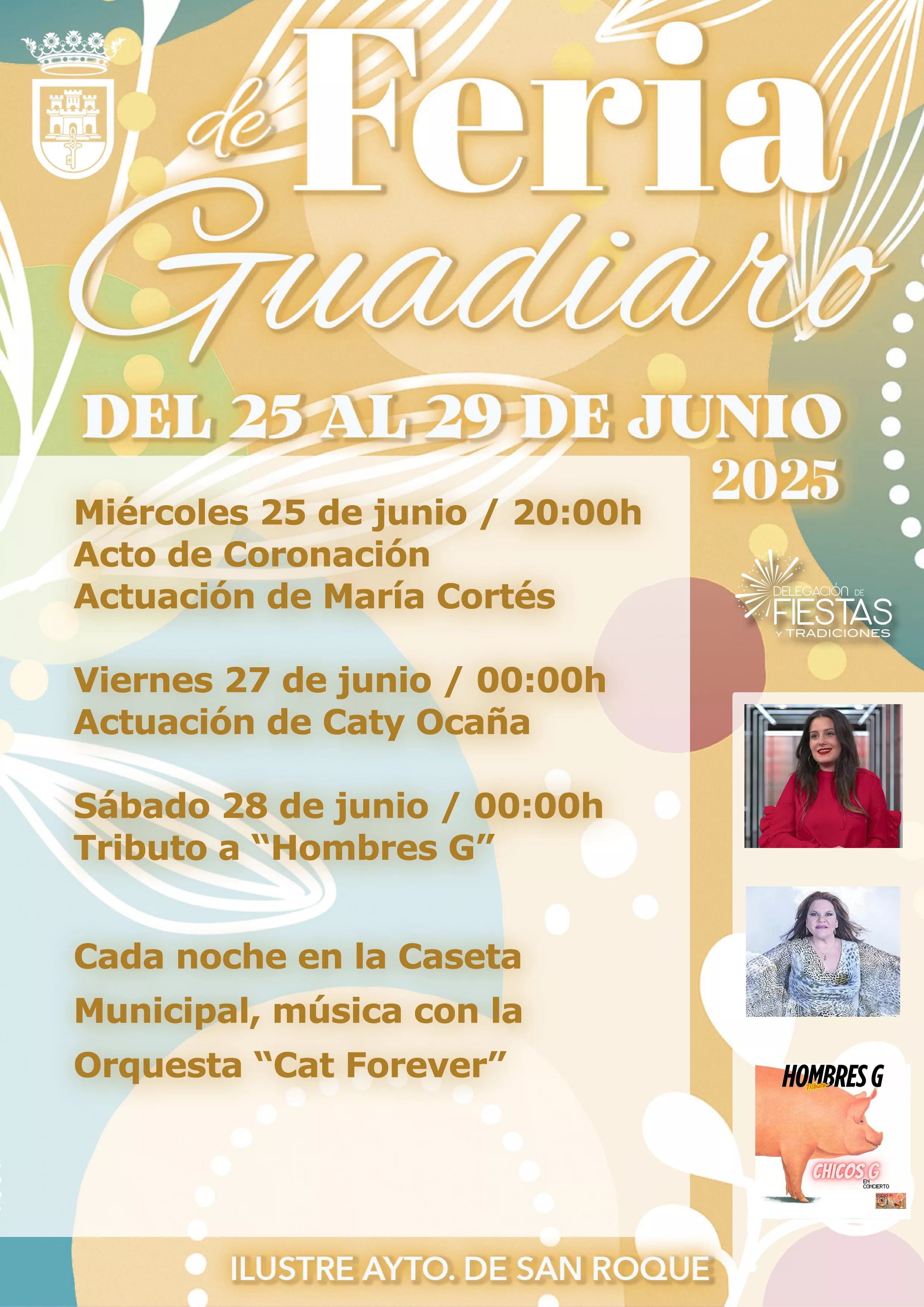 En cuanto a la programación, la Feria de Guadiaro 2025 comenzará el miércoles 25 a las 20.00 horas con la llegada de las cortes a la Caseta Municipal. Una actuación de baile de la Asociación Cultural Vanessa Orrán servirá para arrancar la Coronación, durante la cual se contará con el pregón de Antonio Torres, fundador de la Ferretería El Motor y una persona muy querida en la zona en cuyo tejido social siempre ha estado muy implicado.