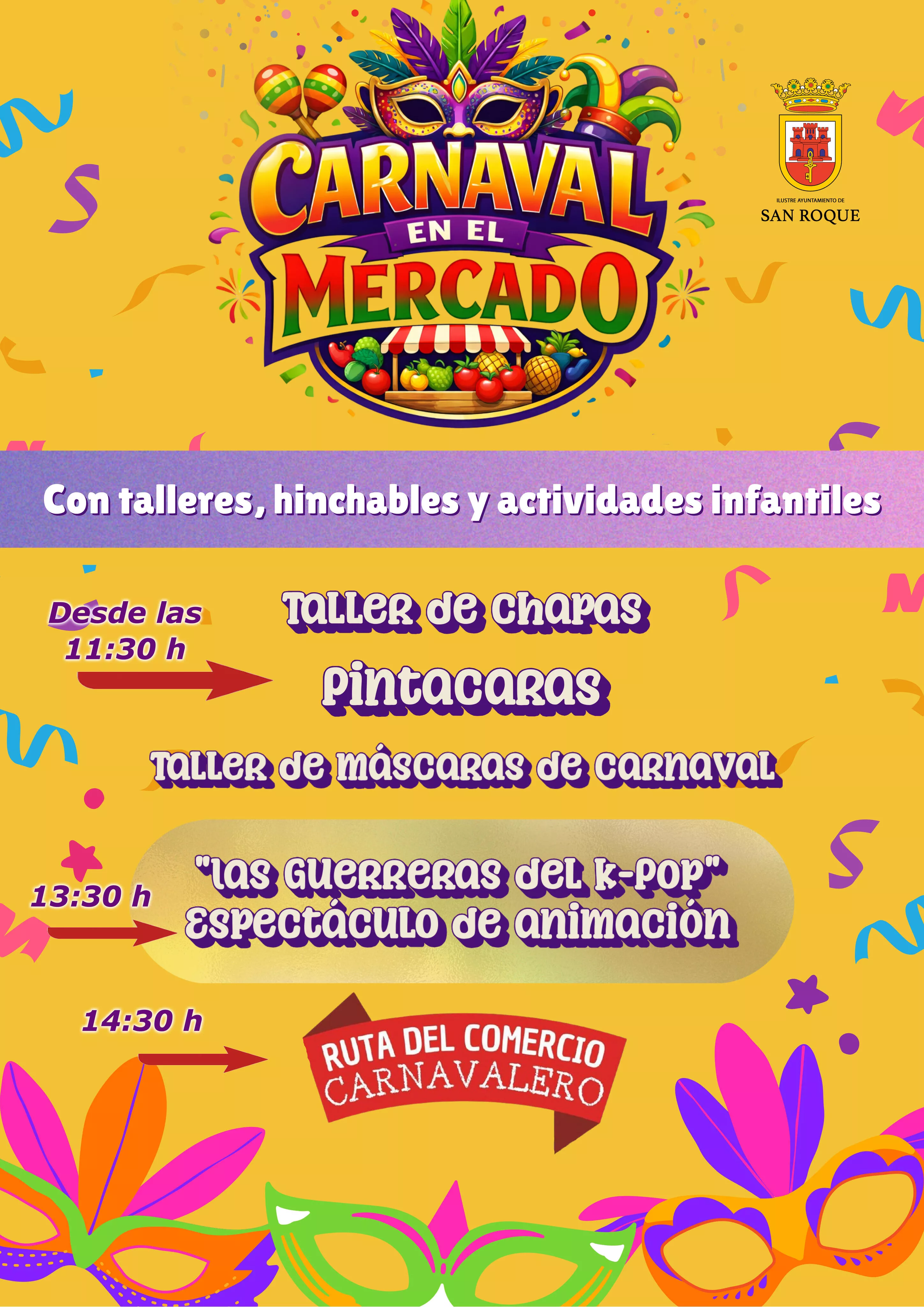 El sábado 21 de febrero se celebrará desde las 11 y media de la mañana el primer Carnaval en el Mercado Diego Ponce. David Ramos explicó que el evento contará con actividades dirigidas a los más pequeños, como talleres de chapa, de máscaras y pintacaras. A las 13:30 horas habrá un espectáculo de animación protagonizado por “Las guerreras del K-Pop”.