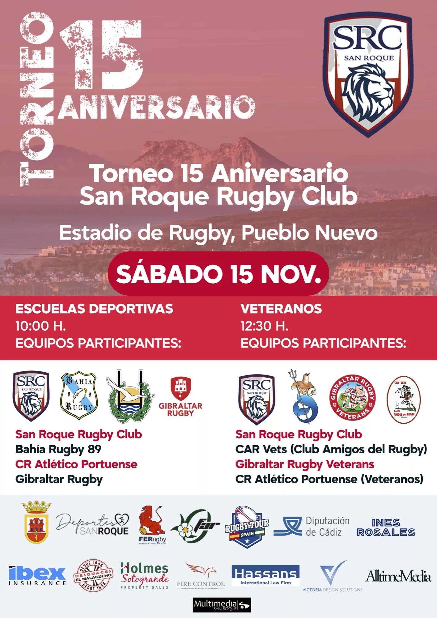 Los partidos con motivo del 15 aniversario del club comenzarán a partir de las 10 de la mañana con los enfrentamientos de las escuelas, entre los clubes invitados participan el anfitrión, San Roque Rugby Club, junto a Bahía Rugby 89, C.R. Atlético Portuense y Gibraltar Rugby.