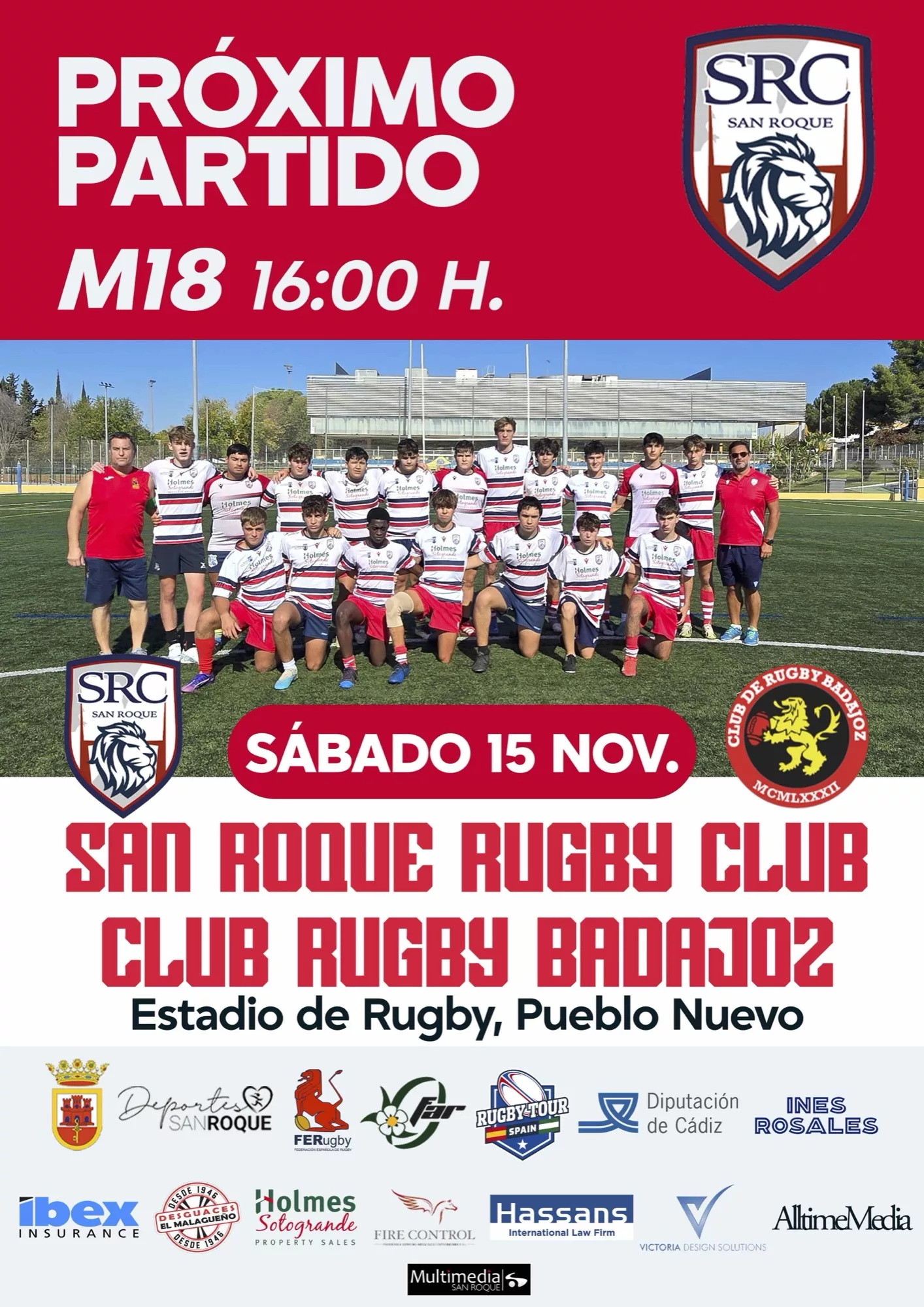 Por último, el plato fuerte de la jornada, el partidazo de M18, donde los leones del club sanroqueños reciben al Club de Rugby Badajoz, en un encuentro que promete emoción hasta el final.