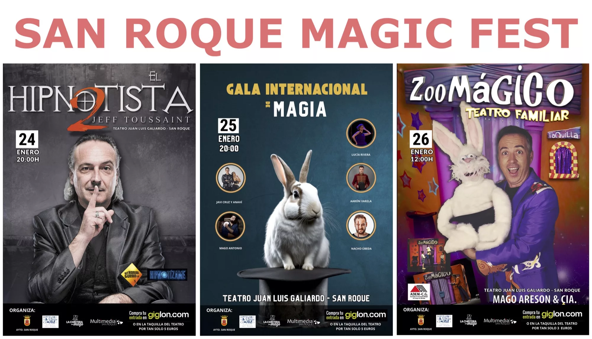 El San Roque Magic Fest finalizará el domingo 26 de enero a mediodía, con el espectáculo familiar “Zoo Mágico”, a cargo del Mago Áreson, quien combina magia, bailes y ventriloquía. Este ilusionista sevillano ha ganado varios premios internacionales y es campeón de España en las categorías de Invención y Grandes Ilusiones.