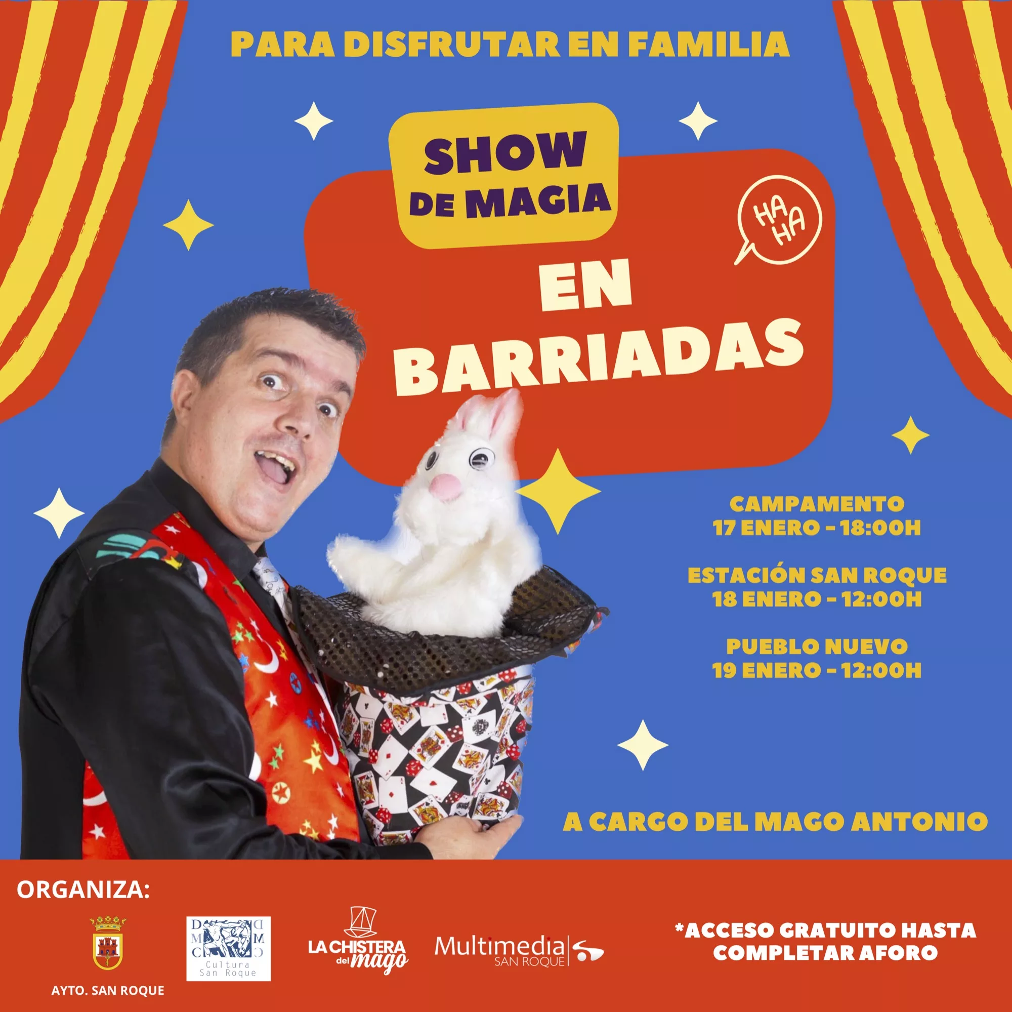 El Centro Cívico Casino Buenavista, en Campamento, acogerá en la tarde de este viernes la primera de las tres actuaciones del Mago Antonio en sendas barriadas sanroqueñas. Se trata de una actividad incluida en la tercera edición del San Roque Magic Fest, que organiza la Delegación de Cultura, que dirige la teniente de alcalde Ana Ruiz.