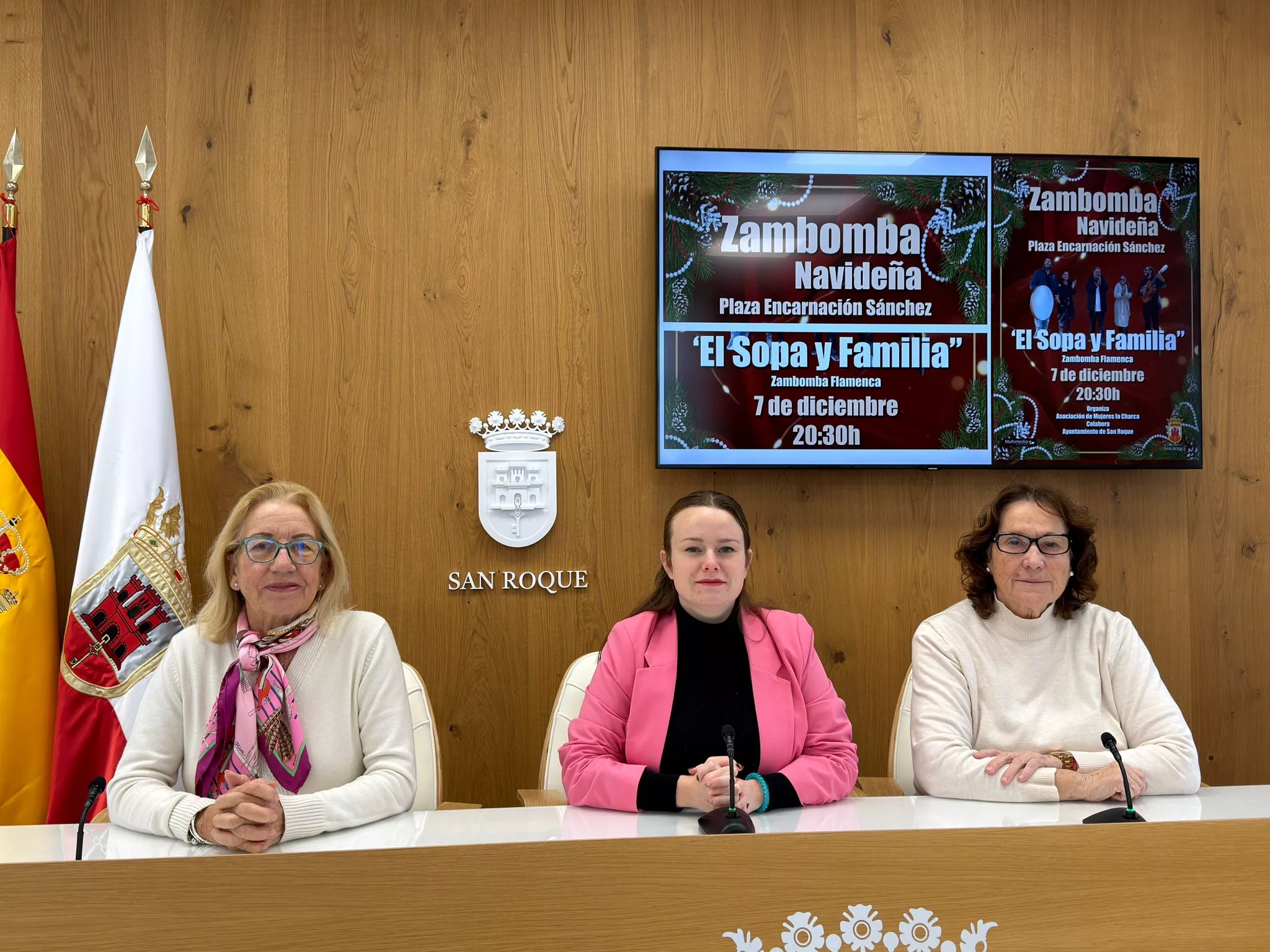 “El Sopa y Familia” protagonizarán el próximo 7 de diciembre, a partir de las 19 horas, la Zambomba Navideña organizada por la Asociación de Mujeres la Charca y que cuenta con la colaboración del Ayuntamiento de San Roque. La plaza Encarnación Sánchez será el escenario de este evento que ha sido presentado por la edil de Participación Ciudadana, Rocío Sánchez, junto a la presidenta de la Asociación de Mujeres la Charca, Ana María Rojas.