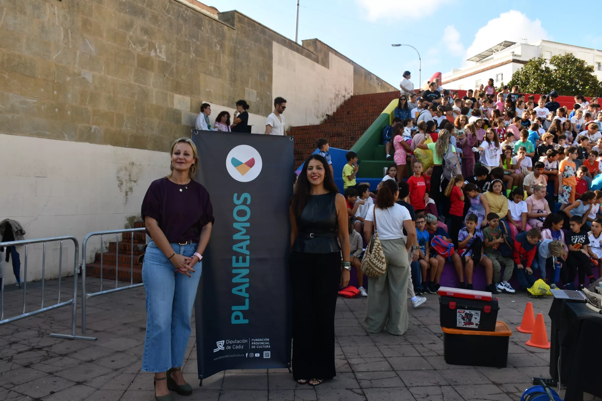 En la mañana de este miércoles, los alumnos de 4º a 6º de primaria de los colegios Carteia, Gabriel Arenas, Santa María Coronada y Maestro Apolinar asistieron a la Plaza de la Igualdad para disfrutar de la última función de este festival. La teniente de alcalde delegada de Cultura, Ana Ruiz, y de Educación, Belén Jiménez, dieron la bienvenida a los pequeños y a sus maestros.
