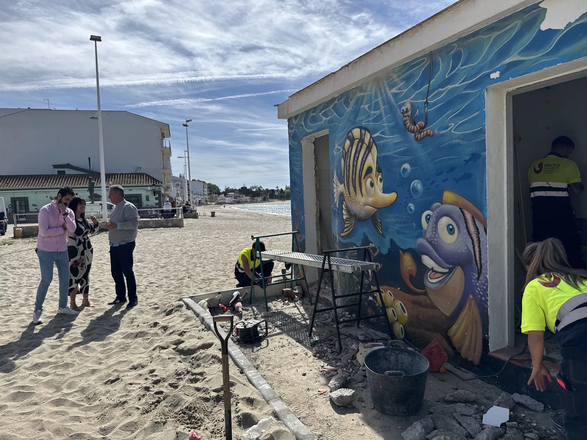 En concreto los ediles han visitado las obras que personal de Obras y Servicios, junto a personal de los Planes de Empleo, realizan en los servicios de la playa, adaptándolos a su uso para personas con movilidad reducida.