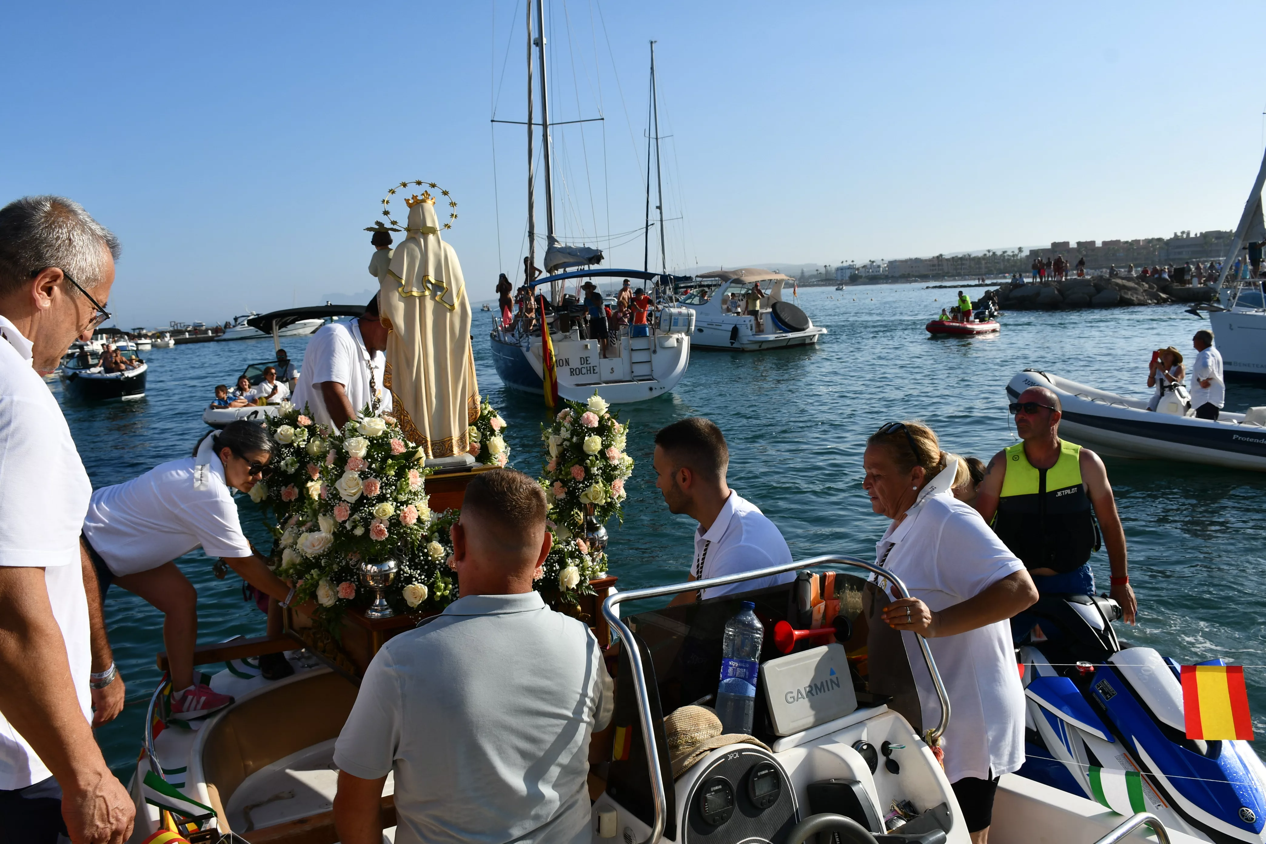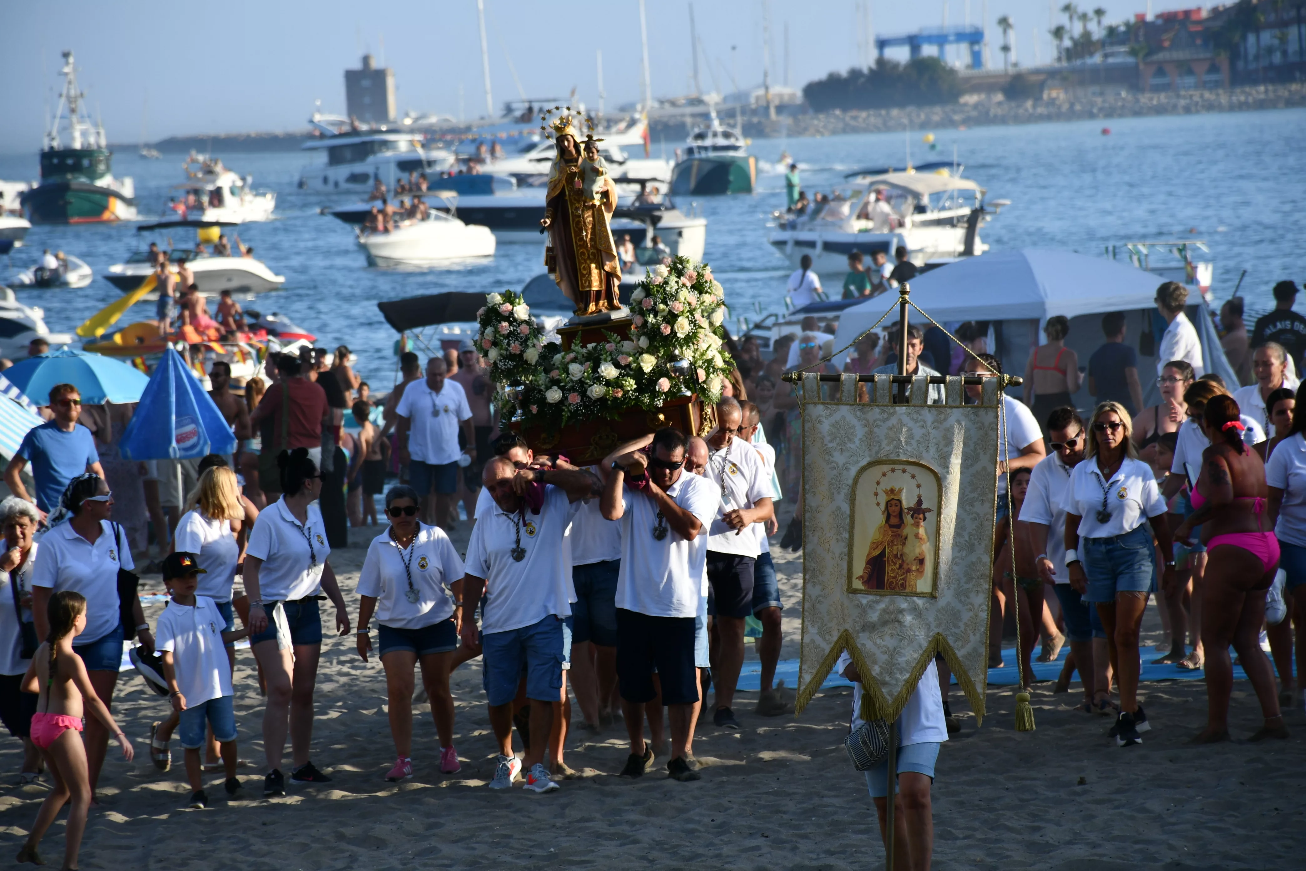 La procesión comenzó con la salida de la imagen de la iglesia, situada en la zona junto a la Torre Nueva. La Virgen del Carmen fue llevada hacia Puerto Sotogrande para ser embarcada a la altura de la Torre de Control, y se le dio un paseo en barco hasta la Ensenada de Torreguadiaro, donde desembarcó con gran presencia de público.