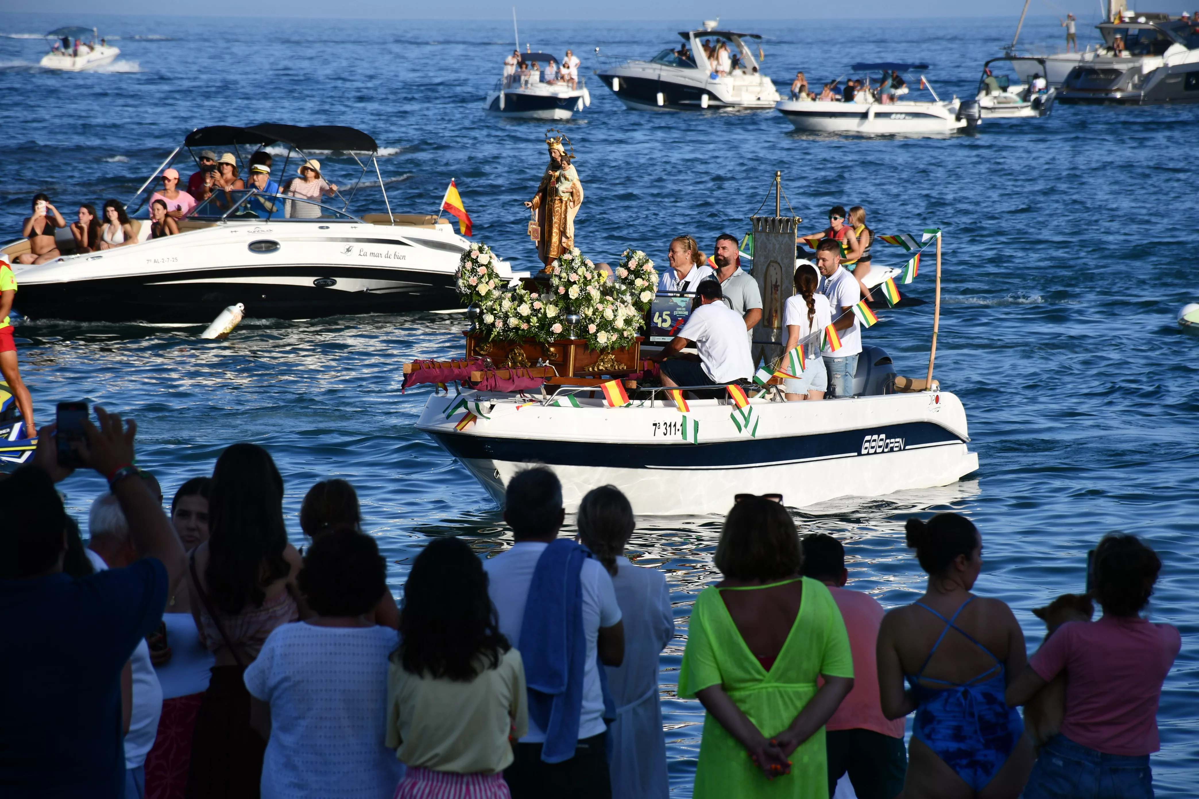 La barriada de Torreguadiaro ha vivido este miércoles su tradicional procesión de la Virgen del Carmen, en la que la imagen se pasea en barco por las aguas cercanas, se celebra una misa rociera y se acaba con una sardiná en la zona del Paseo Marítimo. Numerosas personas se han dado cita en la celebración, entre los que se contaban el alcalde, Juan Carlos Ruiz Boix, la teniente de alcalde de Tradiciones, María del Mar Collado, y la concejal delegada del Valle del Guadiaro, Eva Gil, así como otros ediles de la Corporación.