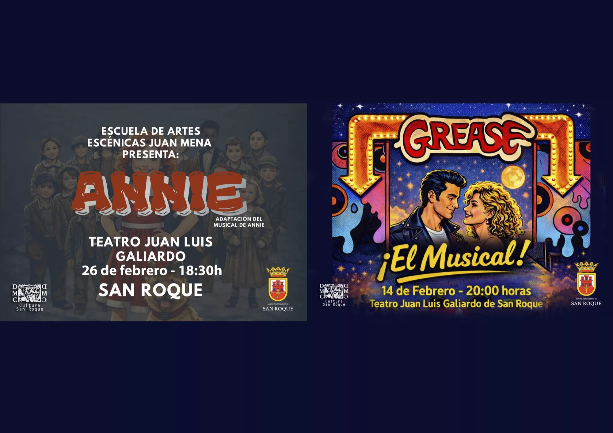Las míticas canciones de “Grease”, este 14 de febrero, y las aventuras de la huerfanita Annie, el jueves 26, se podrán disfrutar este mes de febrero en el Teatro Juan Luis Galiardo de la mano de la Escuela de Artes Escénicas Juan Mena.