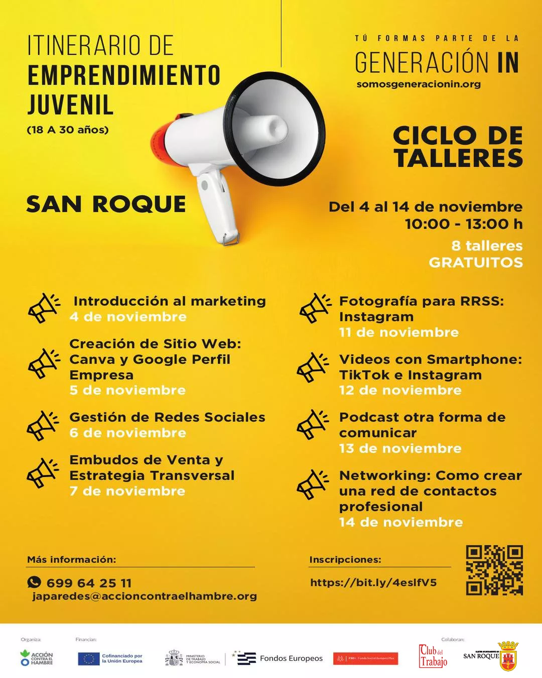 La población de entre 18 y 30 años de San Roque tiene la oportunidad de formarse gratuitamente en distintas disciplinas enfocadas al marketing digital gracias a un taller gratuito que se ofrece desde el Ayuntamiento. Se pondrá en marcha en el mes de noviembre y se ofrecen 25 plazas presenciales, aunque también puede realizarse online.
