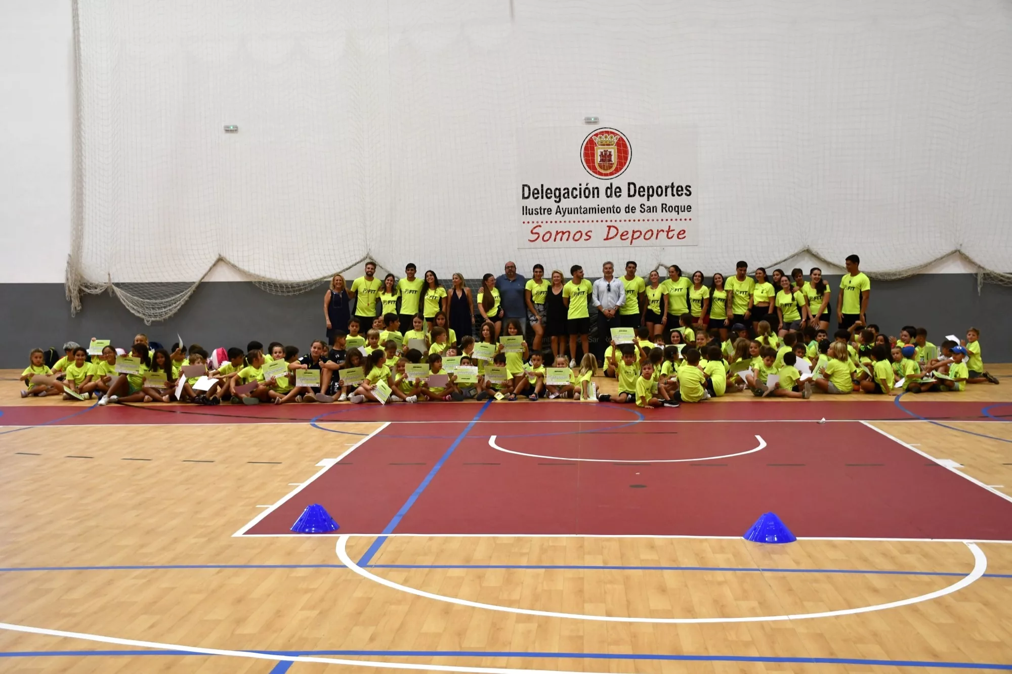 Los 240 niños y niñas que han disfrutado este verano del I Campus Ocio Deportivo San Roque Concilia 2025 han finalizado este viernes esta actividad, una iniciativa gratuita del Ayuntamiento para menores empadronados en el municipio. Los 90 de San Roque Ciudad han recogido sus diplomas en un acto que ha tenido lugar en el Pabellón Cubierto del Casco.