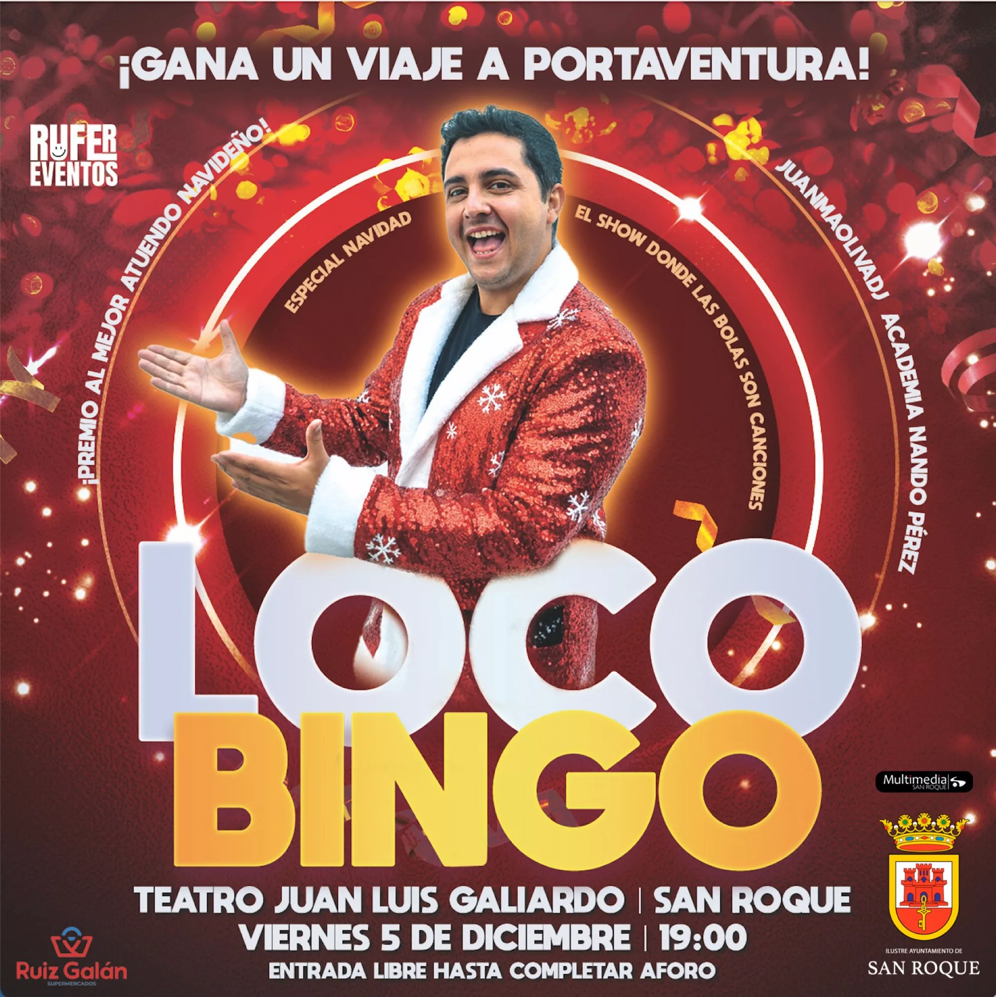 El Teatro Juan Luis Galiardo acogerá el próximo 5 de diciembre el Especial de Navidad de Loco Bingo. Organizado por la Delegación de Participación Ciudadana, la entrada será libre hasta completar aforo y entre los premios se cuenta un viaje a Port Aventura.