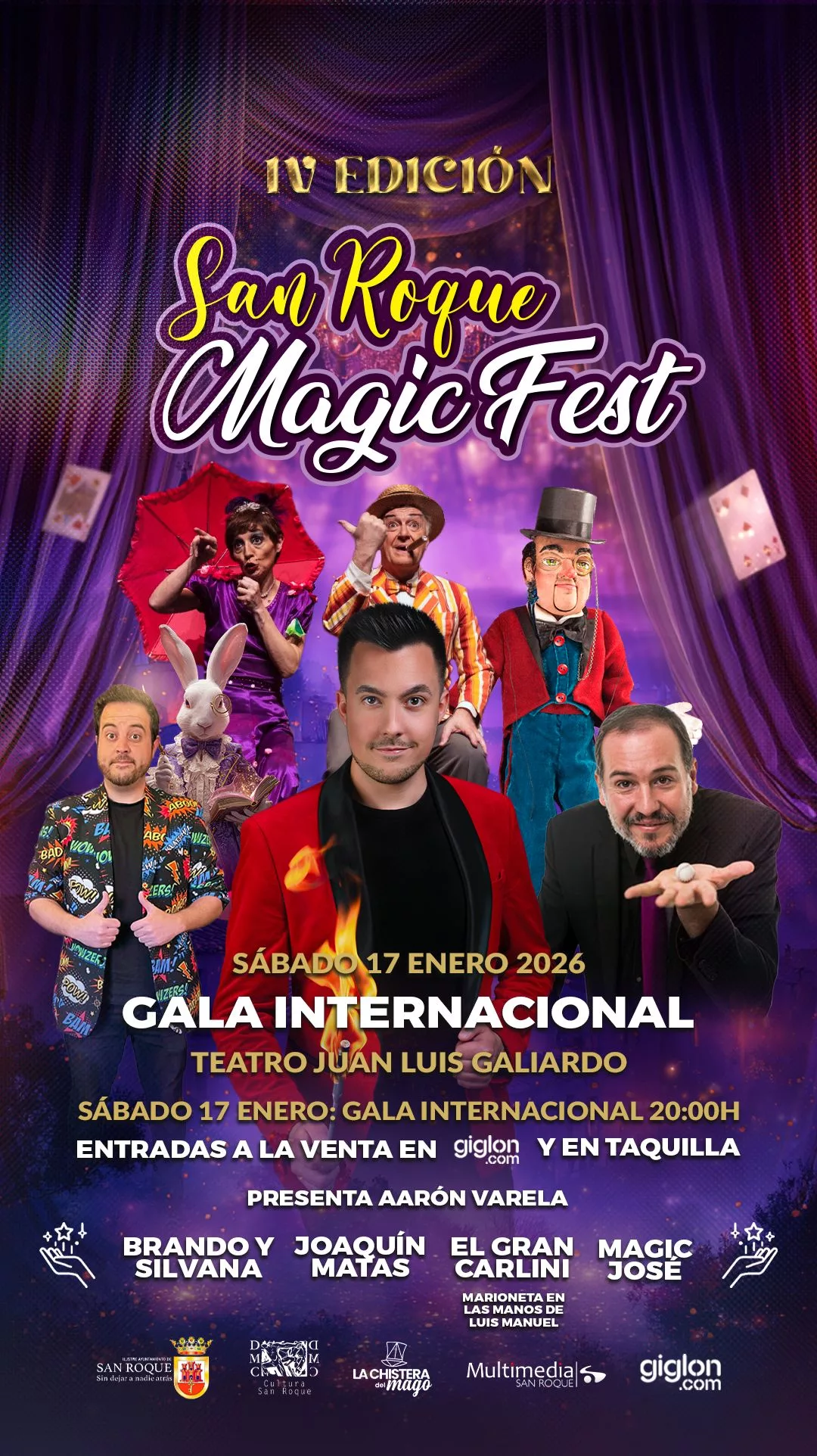 Tras la agenda navideña, el próximo lunes 17 comienza la cuarta edición del San Roque Magic Fest que se llevará a cabo hasta el 25 de enero de 2026. Llega cargada de actuaciones en el Teatro, sesiones de magia en las barriadas y la ya tradicional Escuela de Magia. Las entradas ya están disponibles.