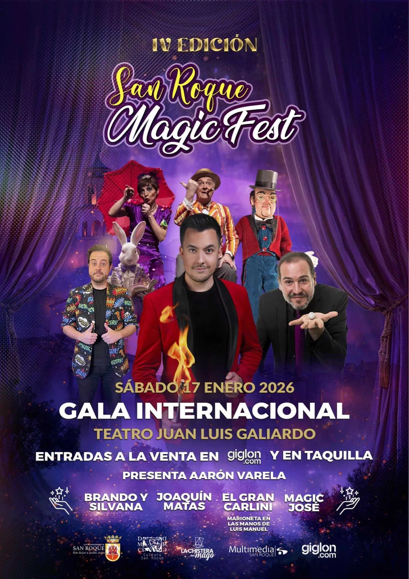 El San Roque Magic Fest tendrá dos actuaciones en el Teatro Juan Luis Galiardo. Así, el sábado 17 enero a las 20.00 horas se ofrecerá la Gala Internacional, en la que actuarán los argentinos Brando Silvana, y Joaquín Matas, “El Gran Carlini”, una marioneta en las manos de Luis Manuel, y Magic José.