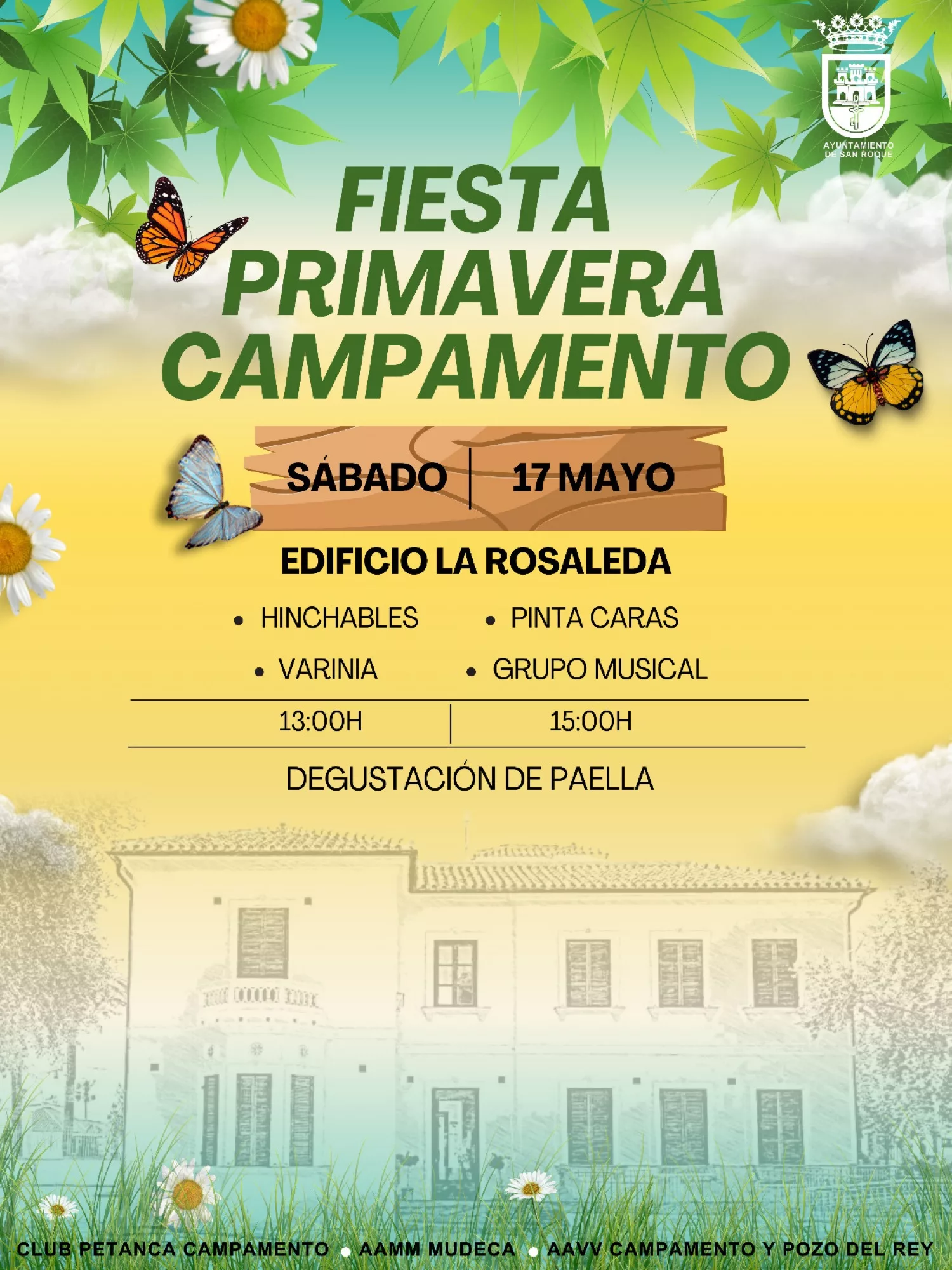 Los colectivos de Campamento organizan este sábado la Fiesta de la Primavera de la barriada, que tendrá lugar en el Edificio Municipal La Rosaleda. Con la colaboración del Ayuntamiento de San Roque, desde medio día habrá distintas actividades infantiles, actuaciones de baile y la música de Antonio Albadalejo, así como una degustación de paella.