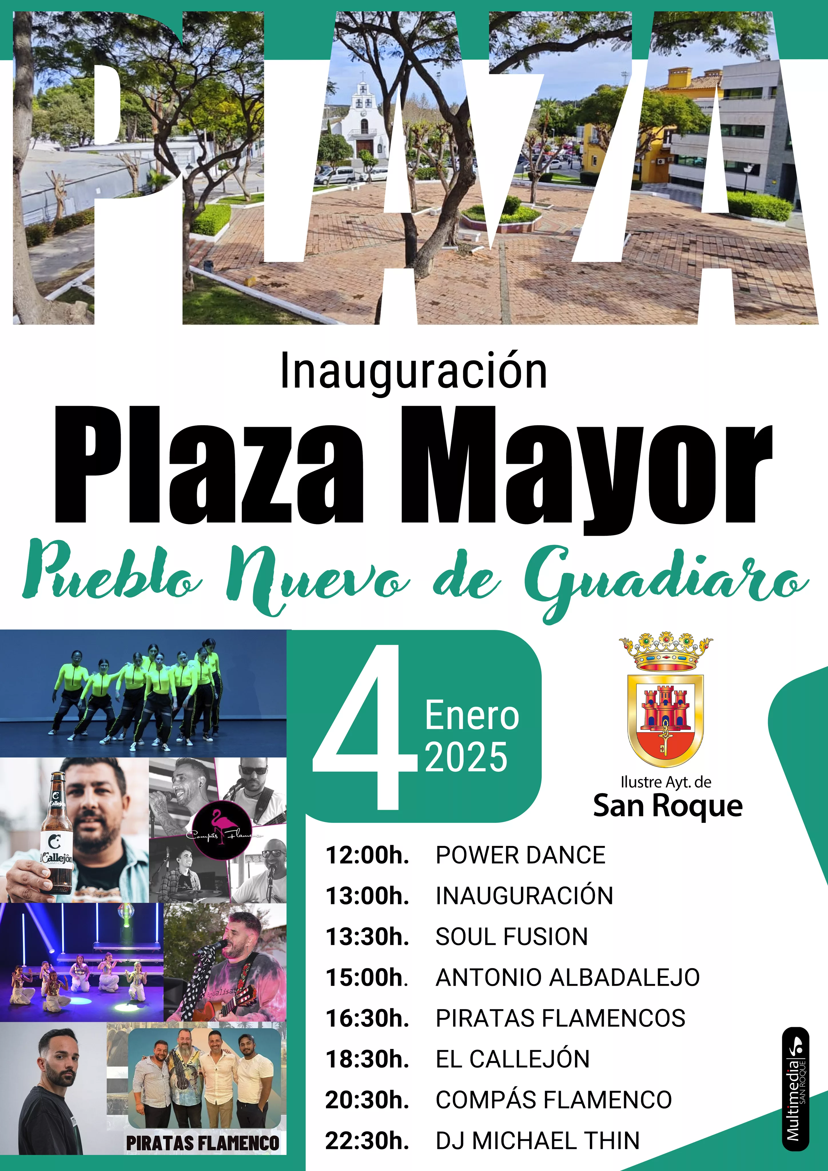 El Ayuntamiento de San Roque ha preparado numerosas actuaciones para celebrar la inauguración de la remodelación en la Plaza Mayor de Pueblo Nuevo de Guadiaro, que tendrá lugar este sábado 4 de enero. El acto oficial con las autoridades municipales será a las 13.00 horas.