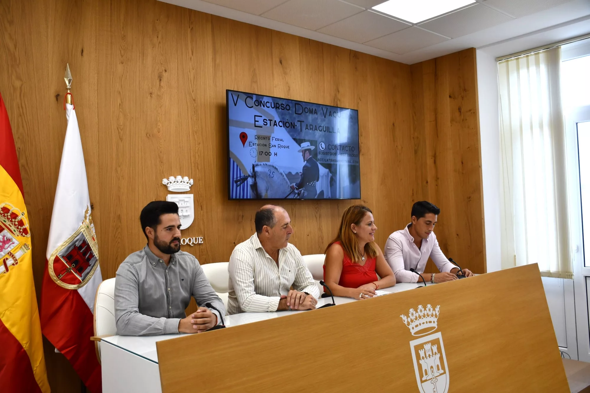 Un total de 29 jinetes y amazonas llegados de distintos puntos de Andalucía se han inscrito para participar en la tarde/noche de este sábado en el V Concurso de Doma Vaquera Estación-Taraguilla, que organiza la Asociación Caballista La Traba. Los tenientes de alcalde delegados de Deportes, Mónica Córdoba, y de Estación, Taraguilla y Miraflores, Juan Serván, han participado en la presentación de este certamen, junto a Luis Moreno y Samuel Jiménez, vicepresidente y tesorero respectivamente de La Traba.