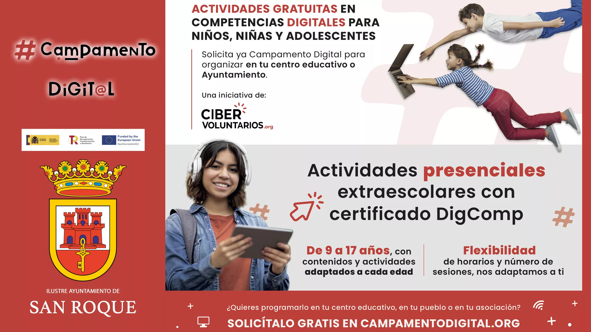 Campamento Digital es un programa de actividades en competencias digitales presenciales extraescolares gratuitas para niños y adolescentes de 9 a 17 años, que tendrá horario de mañana en cursos adaptados a los diferentes grupos de edad: De 9 a 12 años; 12 y 13 años; y de 14 a 17. El campamento digital será impartido en el edificio de la Universidad Popular, «Chari Expresati»