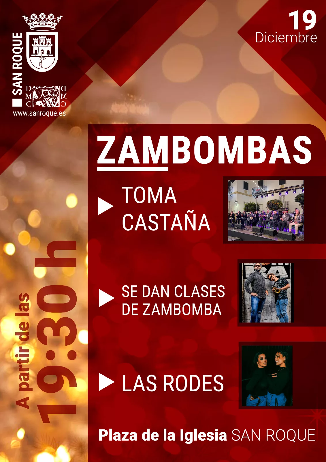 Los grupos Toma Castaña, Se Dan Clases de Zambomba y Las Rodes serán protagonistas este viernes 19 de diciembre, en la Plaza de la Iglesia de San Roque, de la Zambomba Navideña organizada por la Delegación de Cultura.