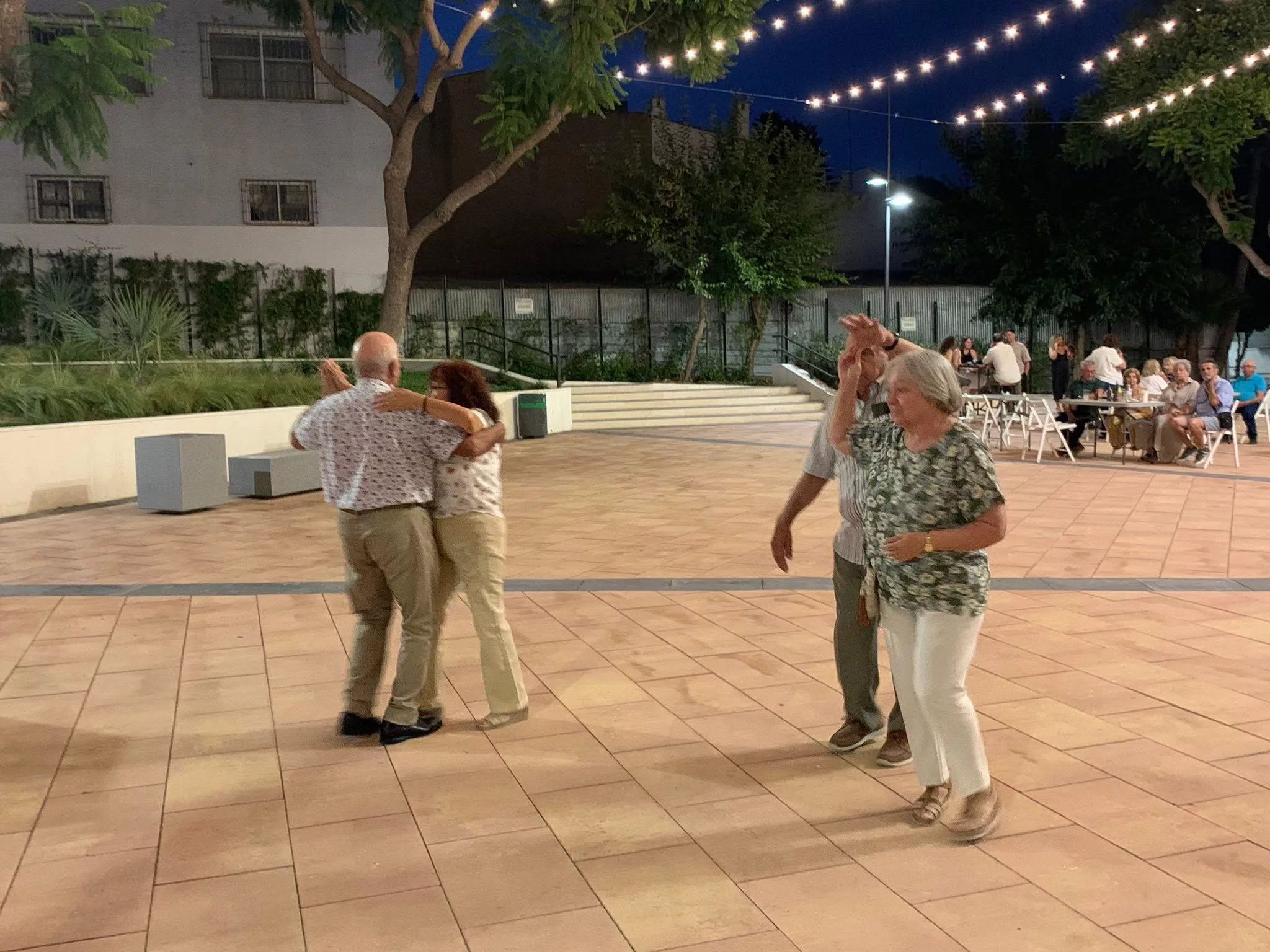 La Plaza Mayor de Pueblo Nuevo de Guadiaro acogió ayer, viernes, la Noche de Pasodoble, una iniciativa del Ayuntamiento que contó con numerosos vecinos que bailaron al son de cinco artistas y de una orquesta. Acudió a la cita la edil responsable del Valle del Guadiaro, Eva Gil, y las tenientes de alcalde Belén Jiménez y Ana Ruiz.
