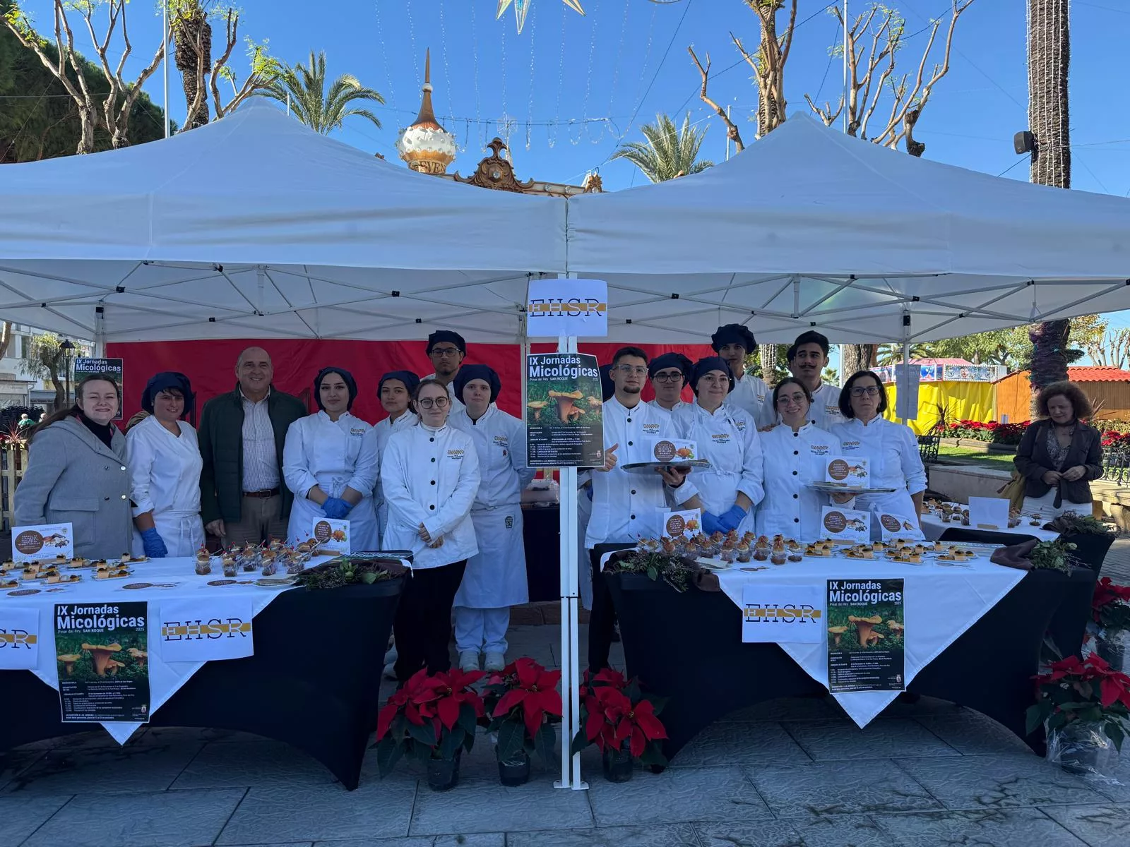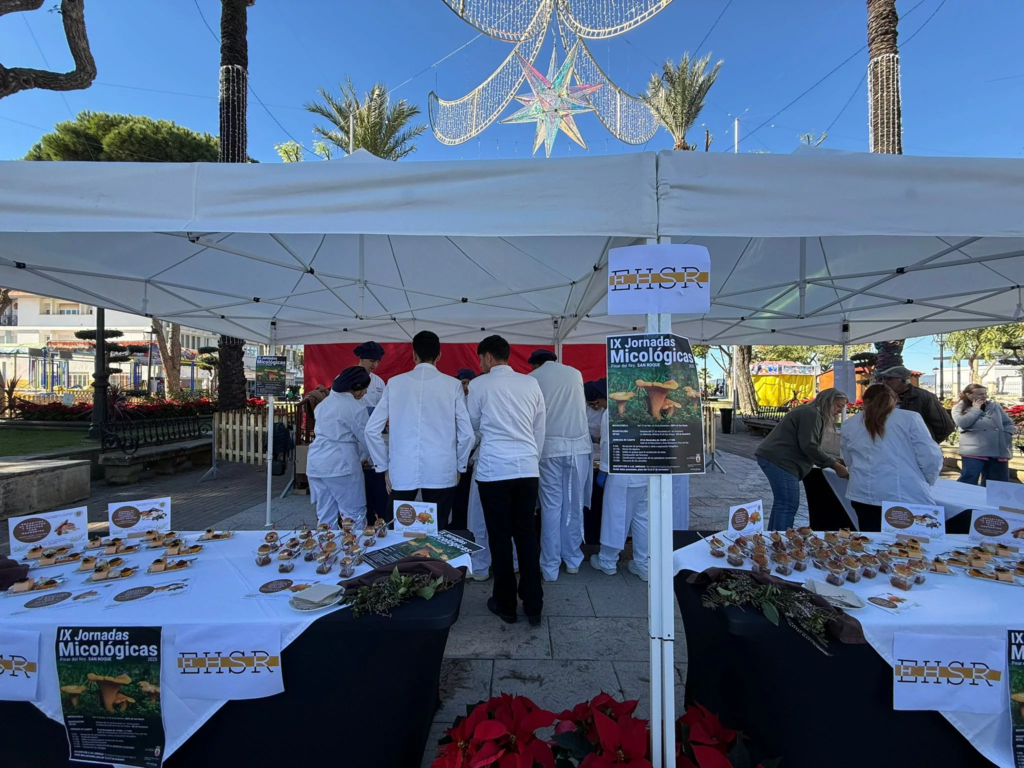 Este miércoles la Alameda Alfonso XI se ha convertido en un lugar donde poder degustar platos elaborados con setas, cocinados por alumnado de la Escuela de Hostelería de San Roque.