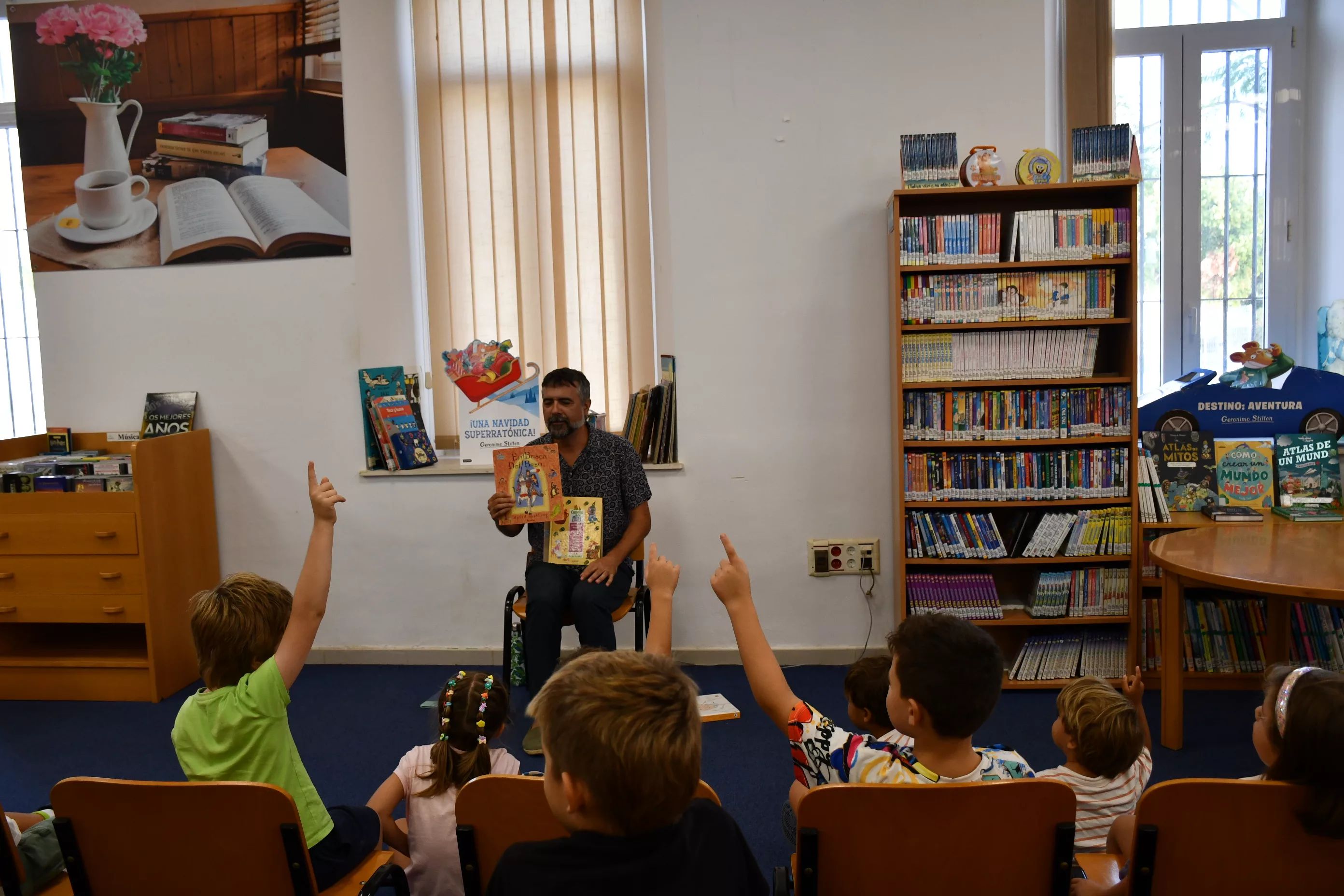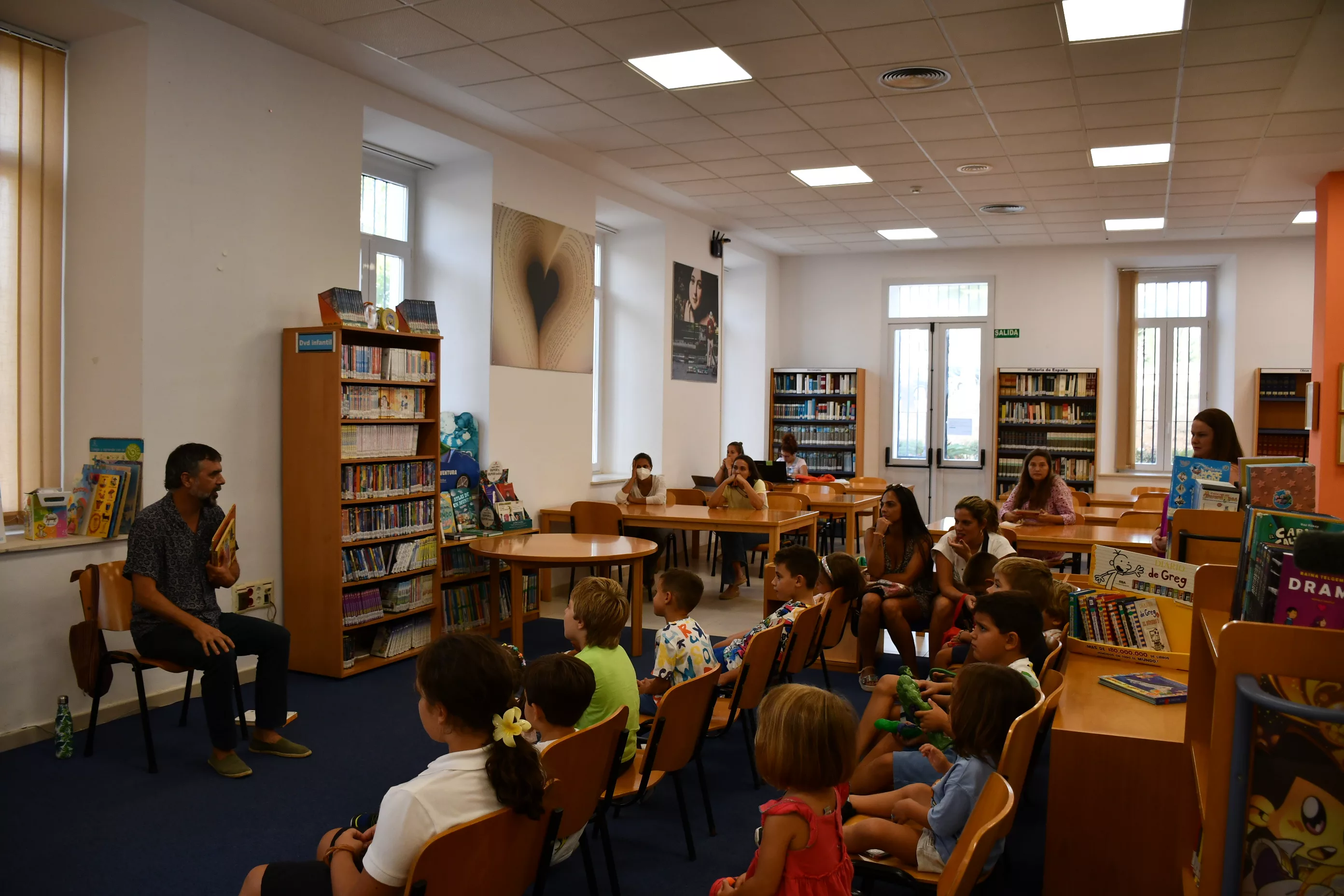 Numerosos niños y niñas, junto a sus padres, se dieron cita en la tarde del pasado lunes para disfrutar de la primera sesión de los cuentacuentos en la Biblioteca del Diego Salinas que se retomaban tras el parón estival. De nuevo y, como cada primer lunes de mes, vuelven las sesiones de “De vuelta con los Cuentos”, en esta ocasión con el narrador Diego Magdaleno, en la que “Tras un ir y venir del agua a la tierra, del botijo al melón. Toca sentarse un rato y viajar con un relato.”