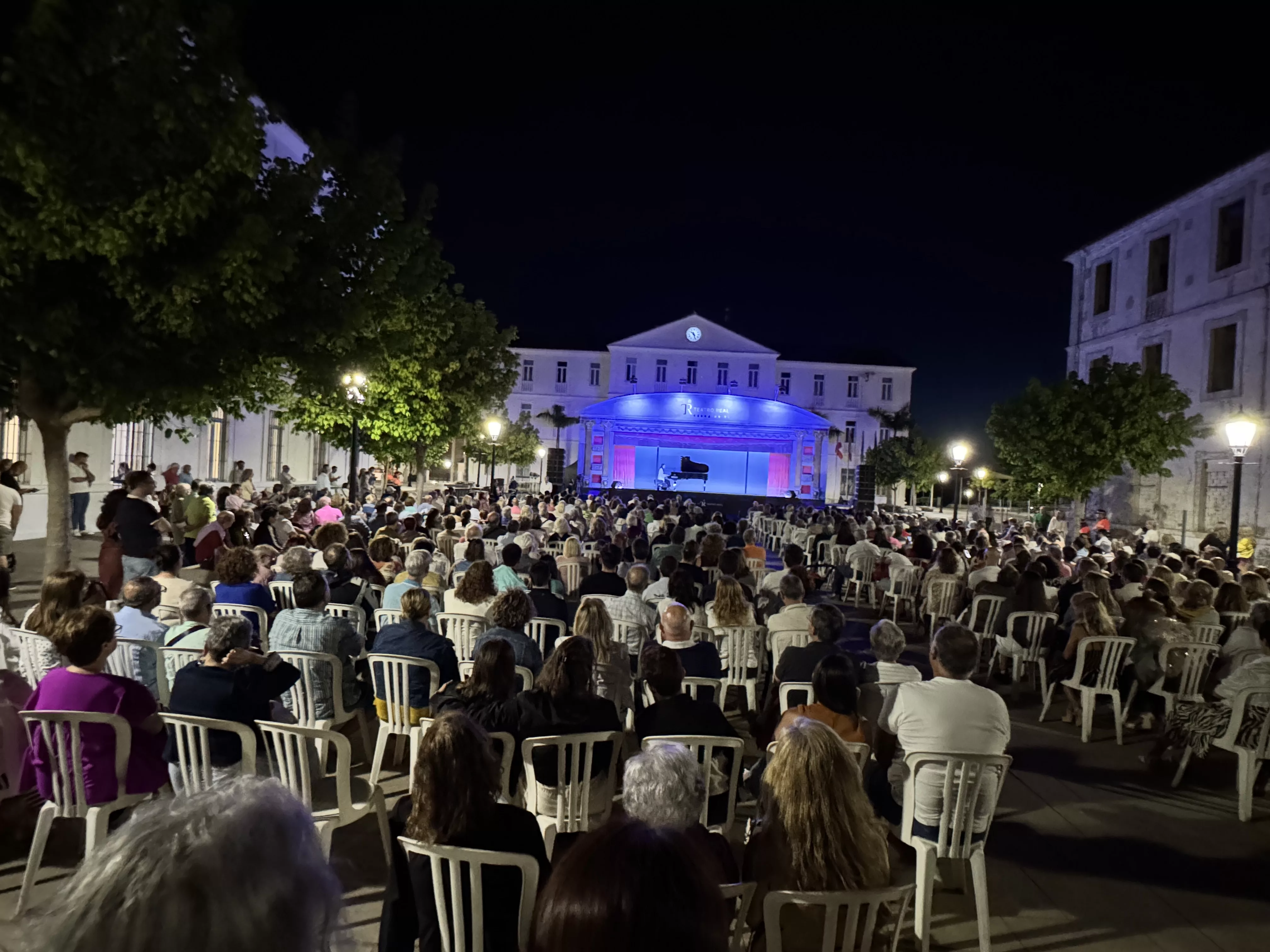 La Carroza del Teatro Real cosechó anoche un éxito rotundo en su actuación en la Plaza de las Constituciones de San Roque. Más de medio millar de personas llenaron por completo las sillas de la Plaza de las Constituciones de San Roque.