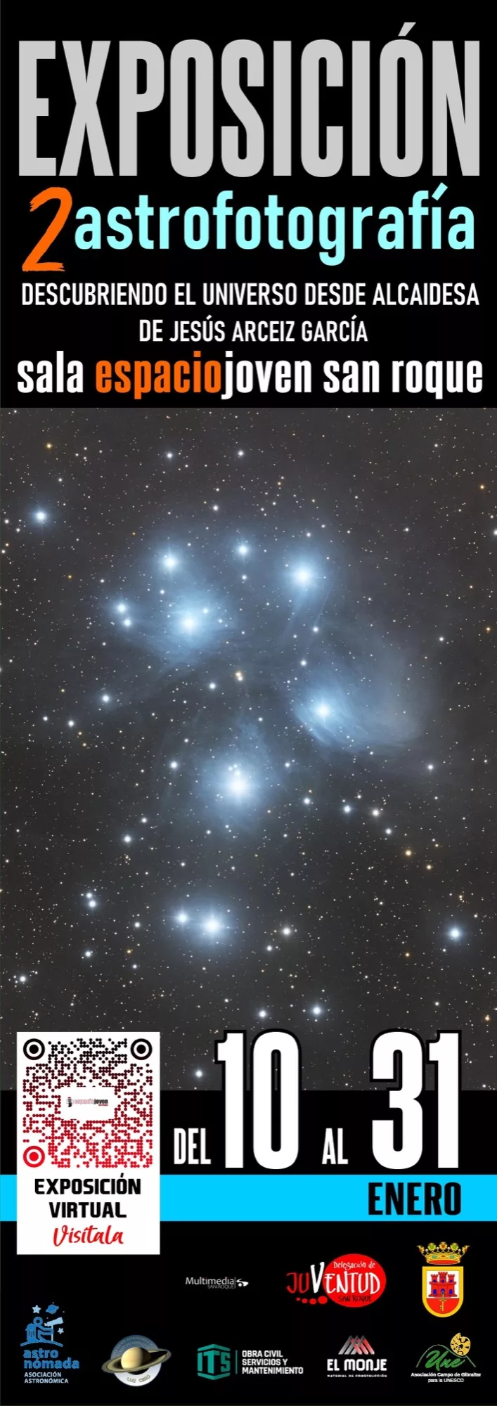 La sala de exposiciones del Espacio Joven de San Roque acogerá entre este viernes y el día 31 de enero una muestra de Astrofotografía con imágenes del linense Jesús Arceiz García. Se trata de una nueva apuesta de la Delegación de Juventud, que coordina el concejal David Ramos.