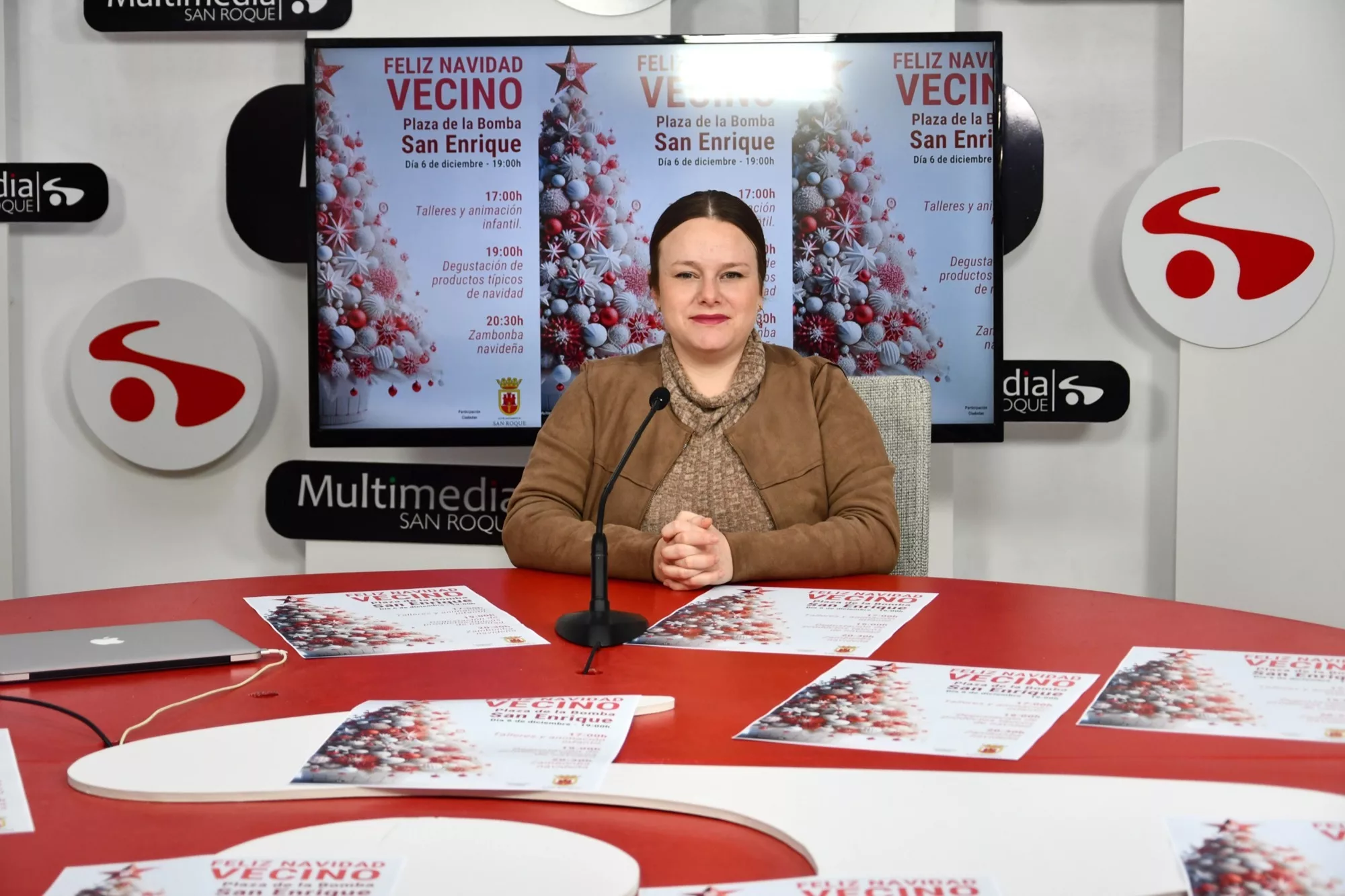 La Plaza de la Bomba de San Enrique acogerá el próximo 6 de diciembre la segunda edición de “Feliz Navidad, Vecino”, una actividad que se incluye en la agenda municipal “San Roque, Ciudad de la Navidad”. La concejal de Participación Ciudadana, Rocío Fernández, ha presentado esta iniciativa en la que participa la comisión de fiestas de la barriada y en la que se cuenta también con la colaboración de la asociación de mujeres de dicho núcleo de población.