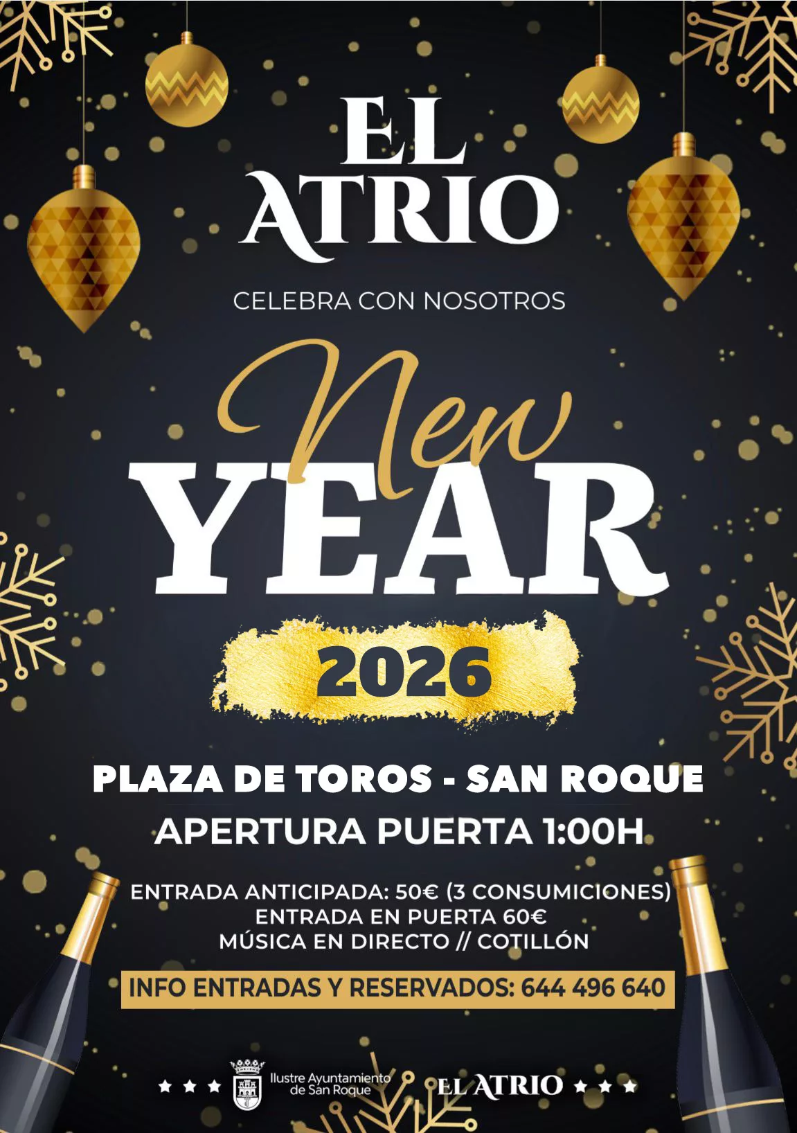 Por tercer año consecutivo, la Plaza de Toros de San Roque contendrá una carpa para la celebración del cotillón del Año Nuevo 2026, que organiza El Atrio. El teniente de alcalde de Juventud, David Ramos, explicó que el Ayuntamiento colabora en esta iniciativa privada para reducir el número de desplazamientos en vehículos privados en una noche tan dada al consumo de alcohol, además de que se genera actividad en el municipio