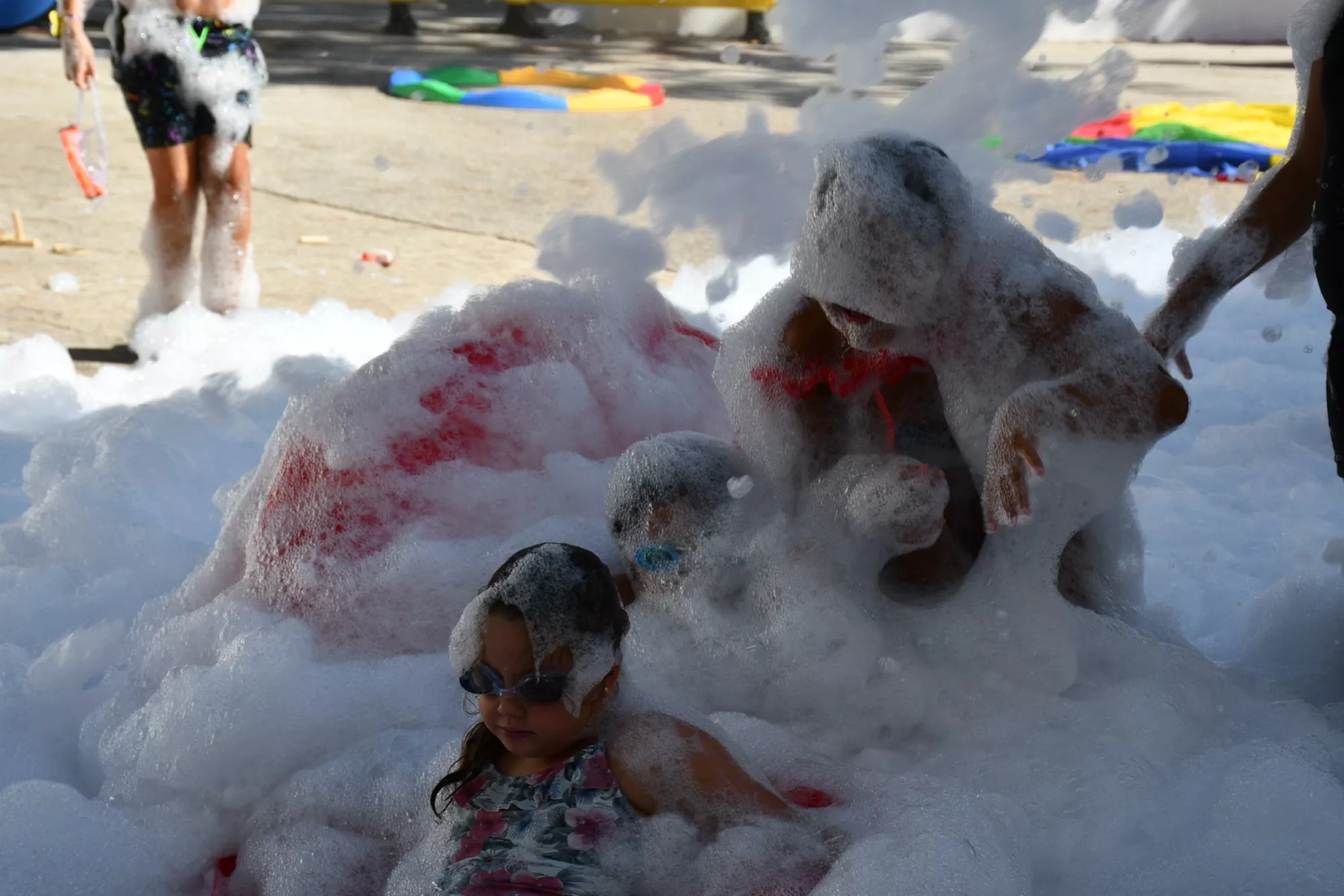 Este miércoles, los usuarios del Campamento de Verano de Garantía Alimentaria han disfrutado de una merecida fiesta de la espuma en la jornada de clausura en el colegio Santa María Coronada. Asistieron la concejal de Igualdad y Asuntos Sociales, Eva Gil, y la teniente de alcalde responsable de la zona de San Roque Ciudad, María del Mar Collado.