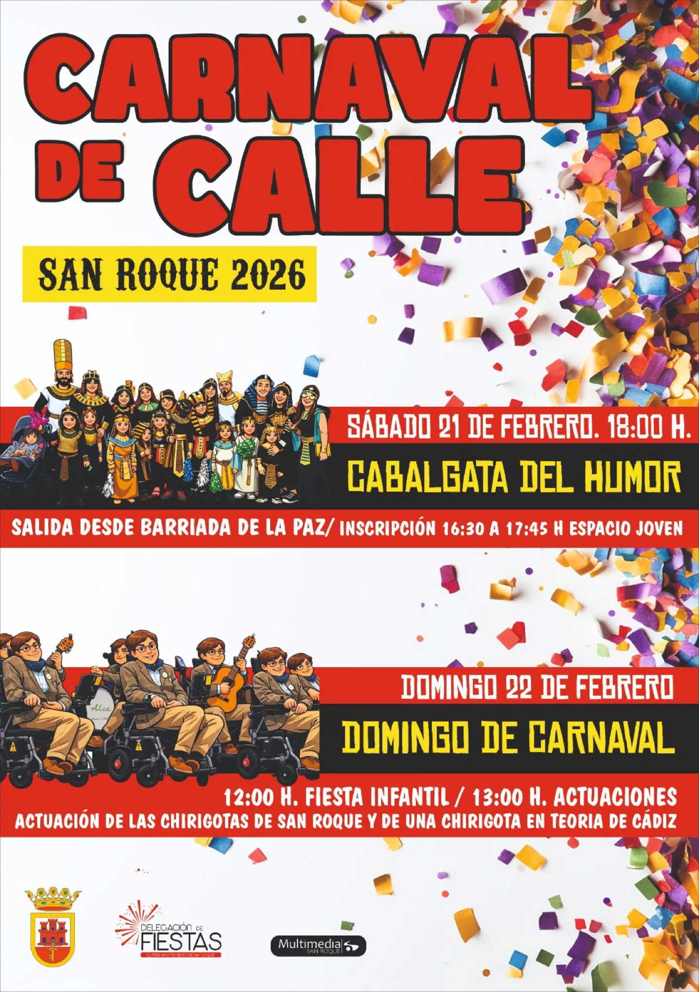 La Delegación de Fiestas del Ayuntamiento de San Roque, que dirige el concejal Abel Heredia, organiza el Carnaval de Calle en San Roque Ciudad, que se desarrollará el sábado 21 y el domingo 22, aunque también participará las delegaciones de Comercio y Juventud, con el teniente David Ramos a la cabeza. Este fin de semana tendrá lugar también el Carnaval de Guadiaro, cuya organización es responsabilidad de la comisión de fiestas de la barriada junto a la Delegación de Fiestas.