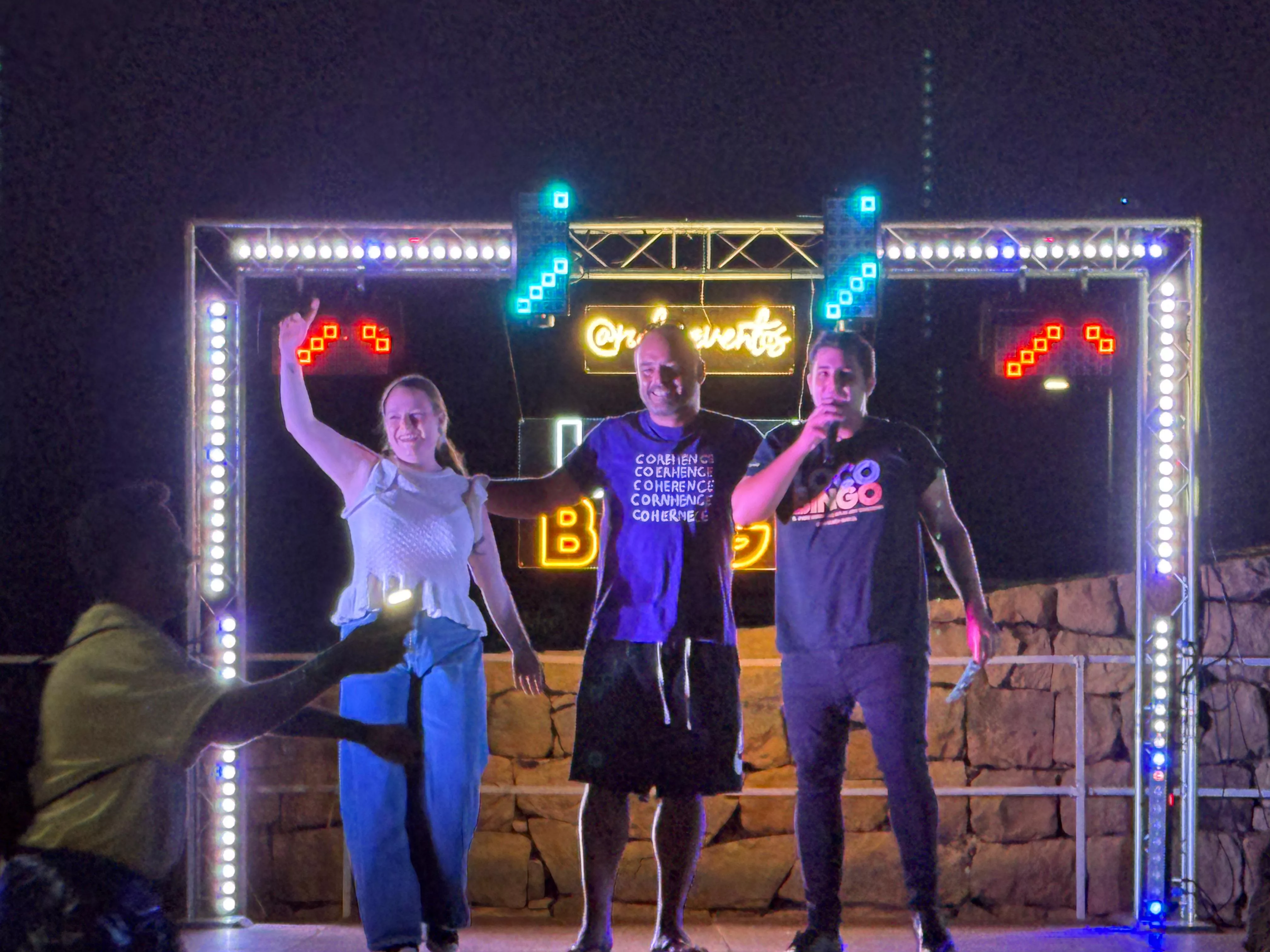 La concejal de Participación Ciudadana, Rocío Fernández, el alcalde accidental, Óscar Ledesma, y la concejal del Valle del Guadiaro, Eva Gil, fueron tres de los numerosos asistentes al Loco Bingo que se celebró en la noche de este domingo en el Paseo Marítimo de Torreguadiaro. Se trataba de la segunda cita de esta actividad que se organiza desde el Ayuntamiento, tras la que se celebró en Los Olivillos a principios de agosto.