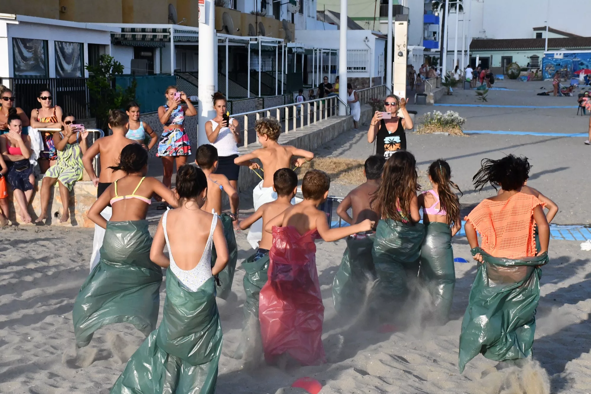Grandes y pequeños se suman a los juegos infantiles en la playa de Puente Mayorga