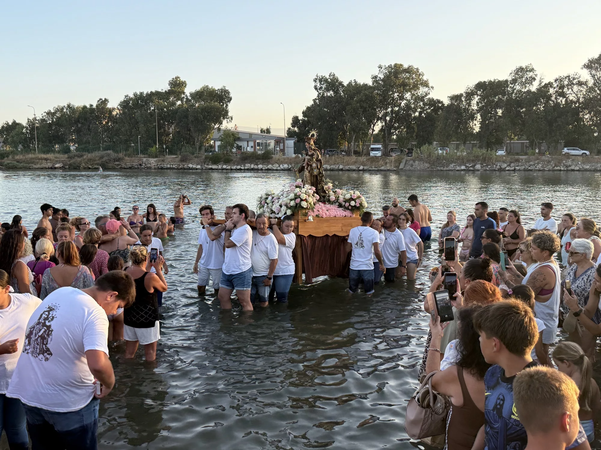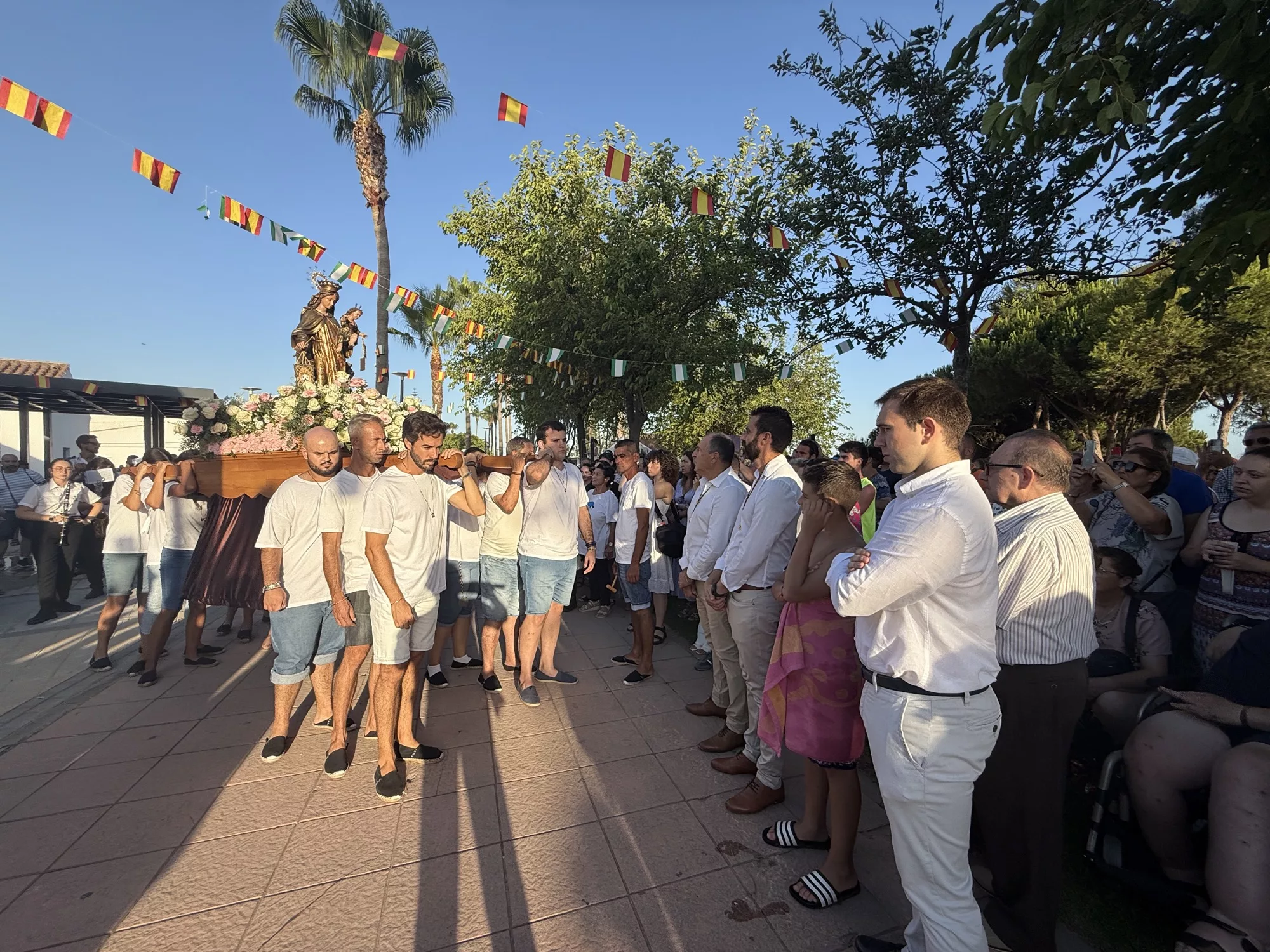Una vez finalizada la misa dio comienzo la procesión, con el siguiente itinerario: calles Redes, Palangre, Los Barcos, Redes y vuelta a la capilla situada en el Multiusos. A su conclusión tuvo lugar el fin de fiesta, con una sardiná en la playa amenizada con música.