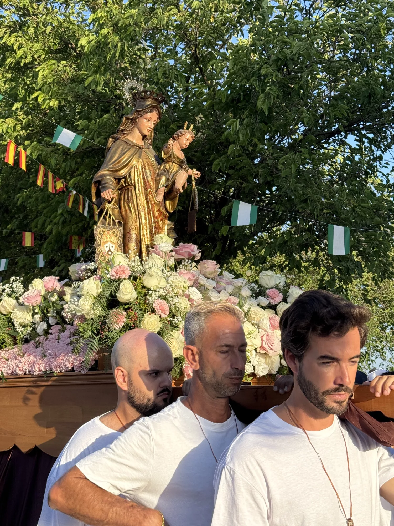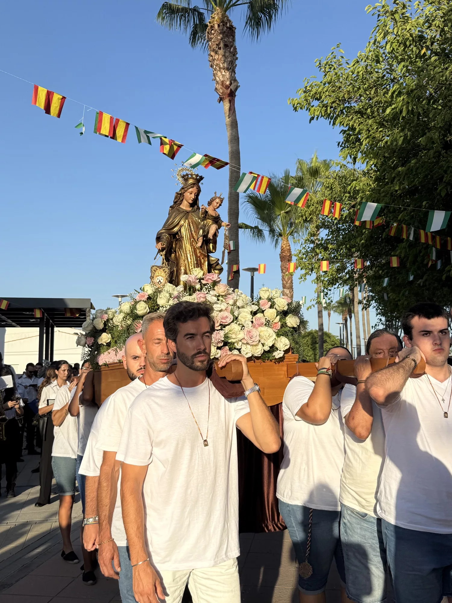 La celebración comenzó con una misa en la capilla habilitada en el Edificio Multiusos, a la que no faltaron el alcalde, Juan Carlos Ruiz Boix, la teniente de alcalde de Tradiciones, María del Mar Collado, y otros ediles de la Corporación. En primer edil dijo que estaba seguro de que muchas personas iban a disfrutar de las tres procesiones de la Virgen del Carmen en San Roque, tanto devotos como vecinos y también muchos visitantes y turistas.