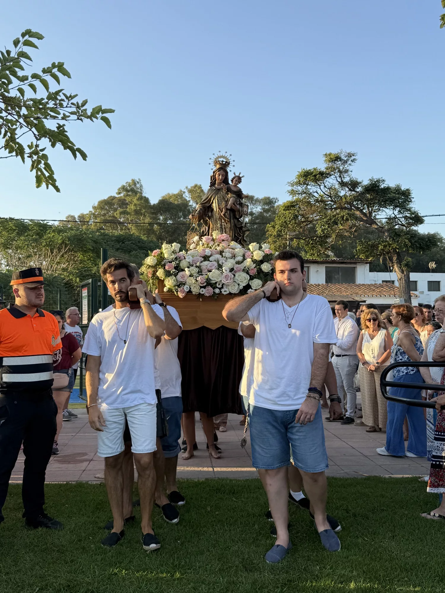 La barriada de Guadarranque, de fuerte tradición pesquera, ha procesionado en la tarde-noche de este miércoles con motivo de su procesión de la Virgen del Carmen, con inicio y final en la capilla habilitada en el Edificio Multiusos. La velada finalizó con una sardiná en la playa.