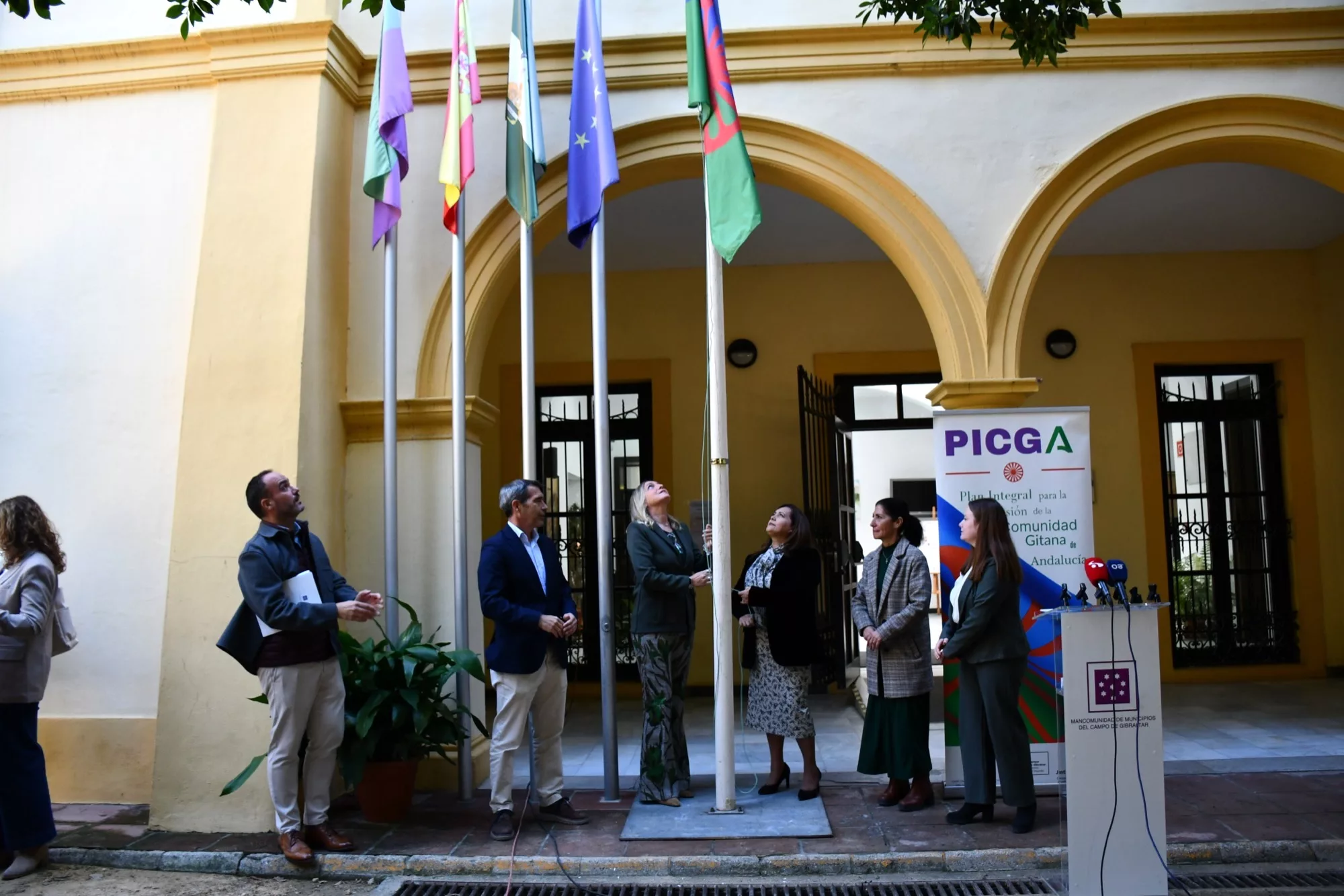 La Mancomunidad de Municipios del Campo de Gibraltar ha celebrado con un izado de bandera y lectura del manifiesto del pueblo gitano el Día de los Gitanos y Gitanas Andaluces. En el acto se contó con la presencia de Rocío Fernández, delegada de Participación Ciudadana del Ayuntamiento de San Roque, así como de otros miembros de la Corporación.