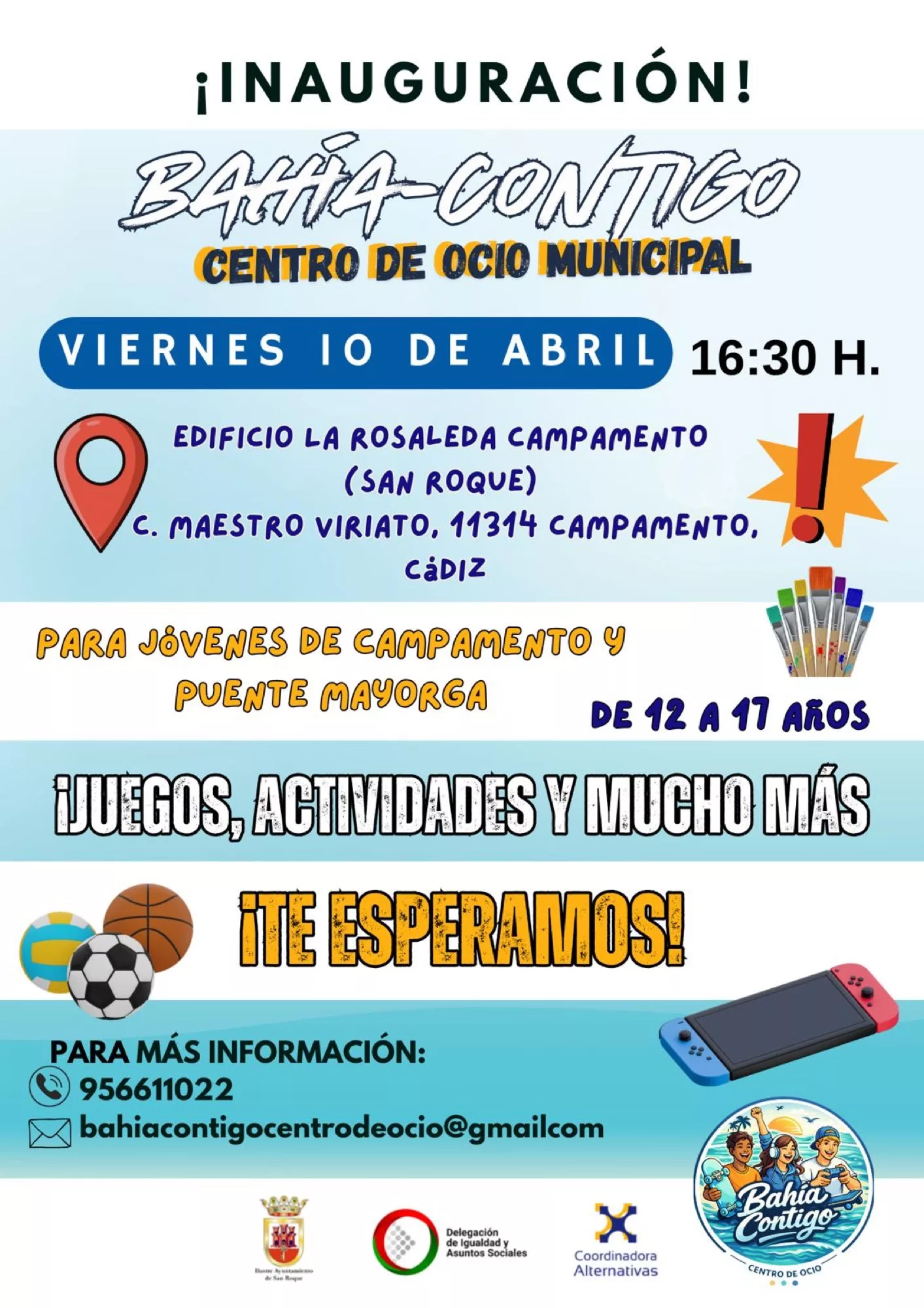 El pasado mes de febrero se firmó el convenio entre el Ayuntamiento de San Roque y la Coordinadora Alternativas para la puesta en marcha del centro de ocio seguro “Bahía-Contigo”, dirigido a la población de entre 12 y 17 años de las barriadas de Puente Mayorga, Campamento y Guadarranque. Este viernes a las 16.30 horas se procederá a la inauguración en el Edificio La Rosaleda de Campamento de este nuevo servicio municipal.