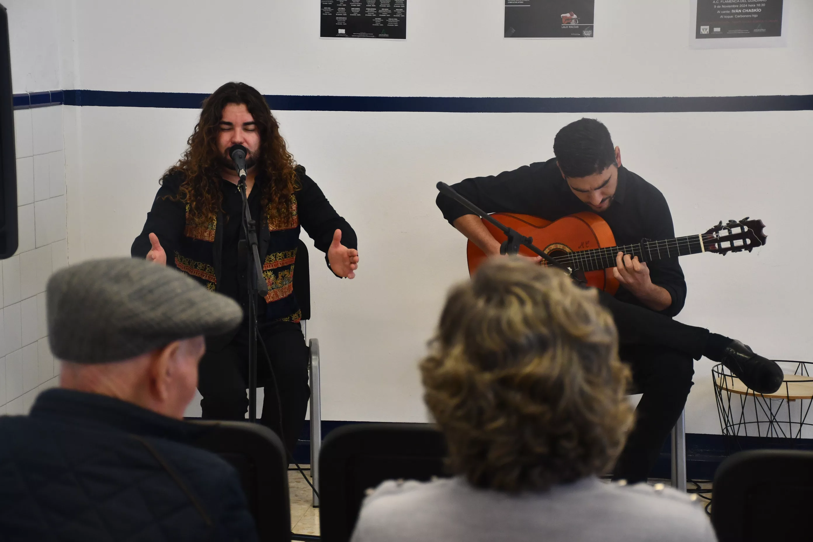 El cantaor Iván Segura “Chaskío” junto a Carbonero Hijo al toque, trajo en la tarde de ayer sábado su cante a la Peña Flamenca de Guadiaro. Una actuación que tuvo lugar en la sede del Hogar del Pensionista de la barriada y que contó con un numeroso público que se dio cita para disfrutar de esta velada protagonizada por el cantaor alicantino.