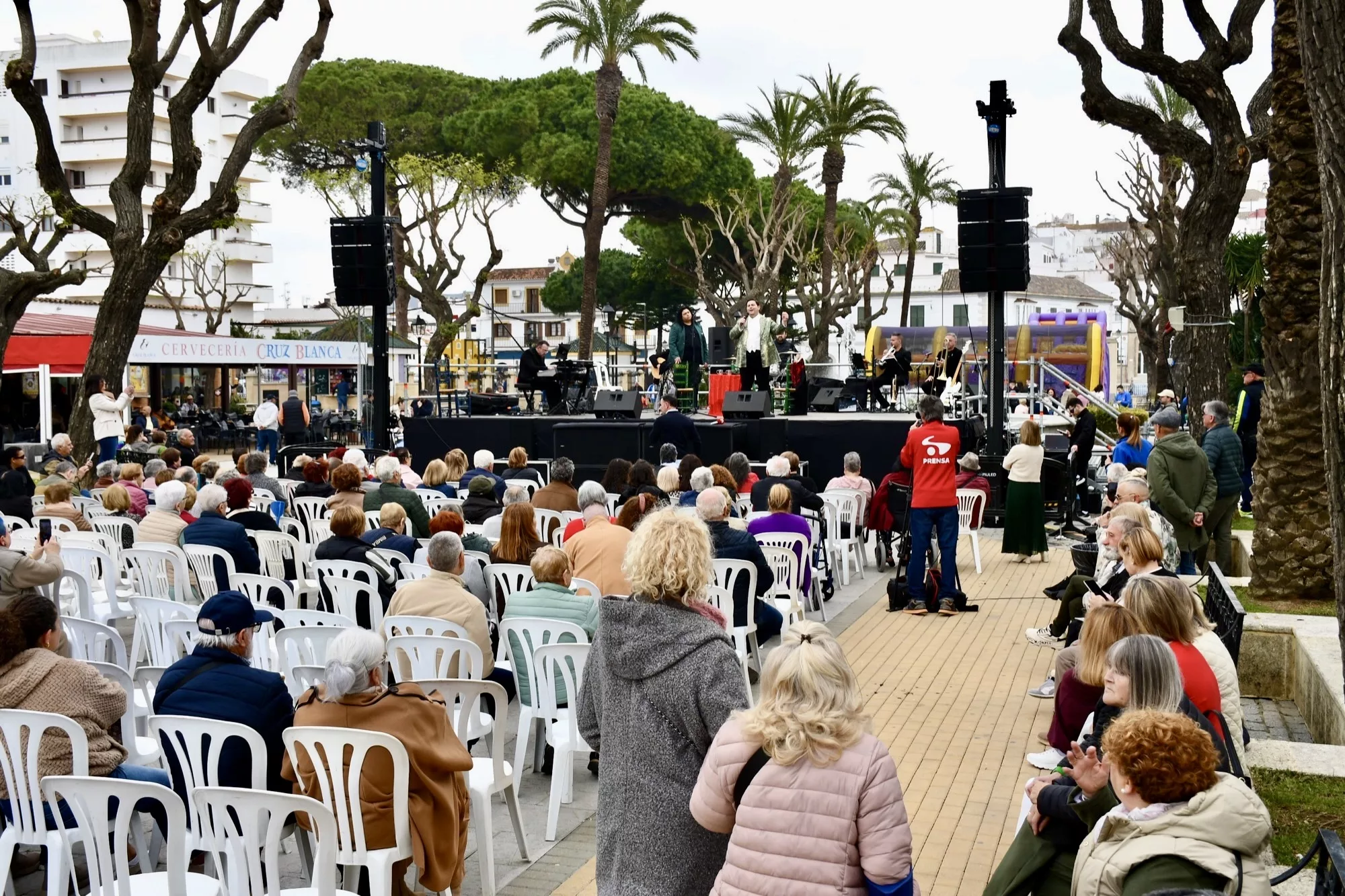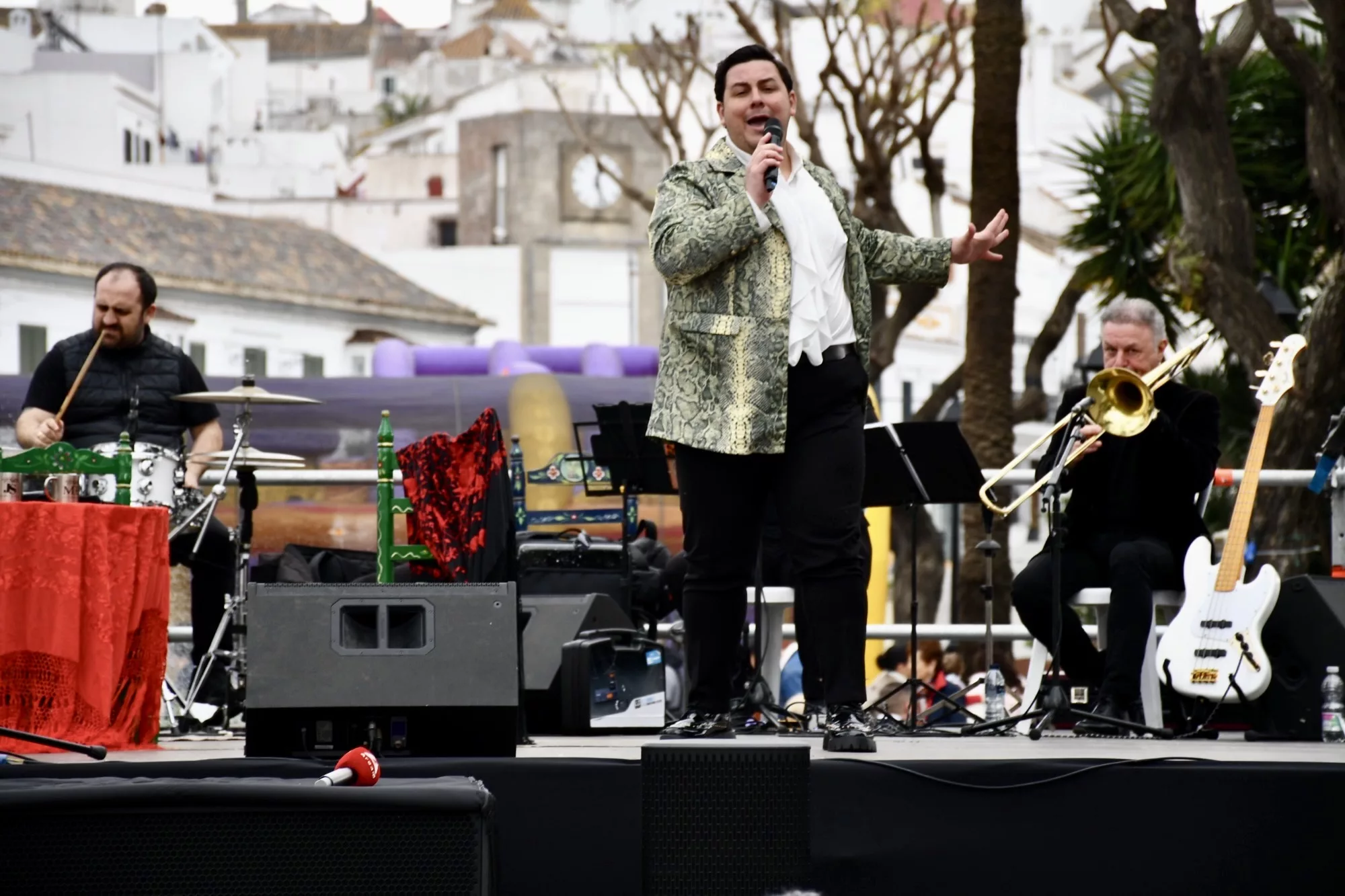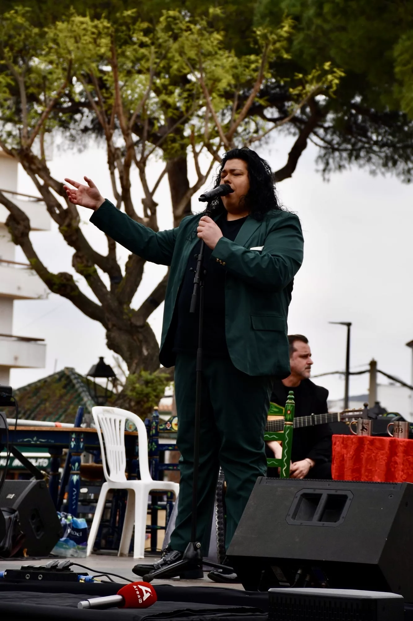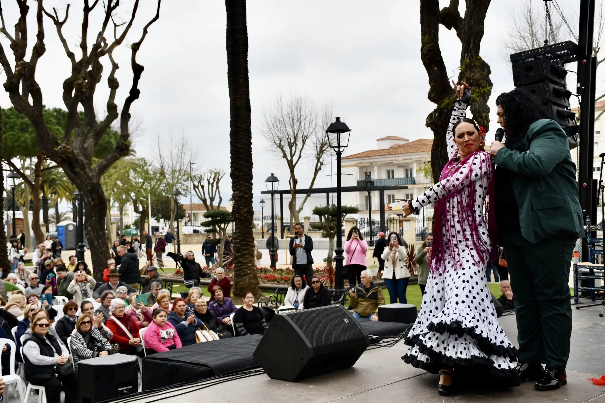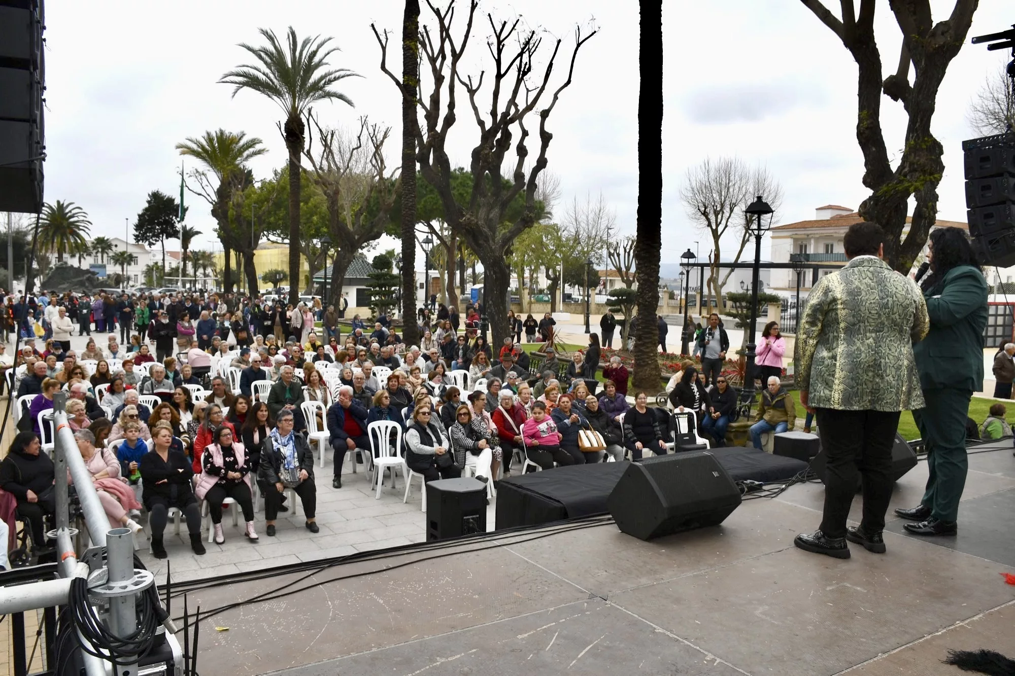 Mientras tanto, comenzó la actuación de Jonathan Santiago y Manuel Berraquero, quienes ofrecieron un mano a mano repleto de canciones de figuras míticas como Rocío Jurado, así como de coplas y de sevillanas, que hicieron disfrutar al numeroso público asistente.