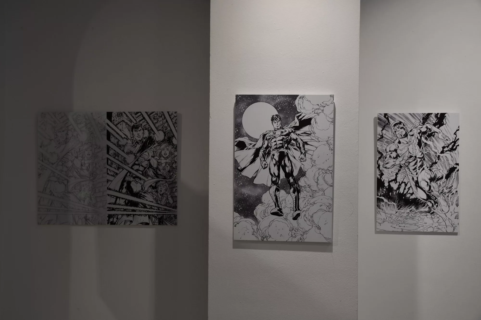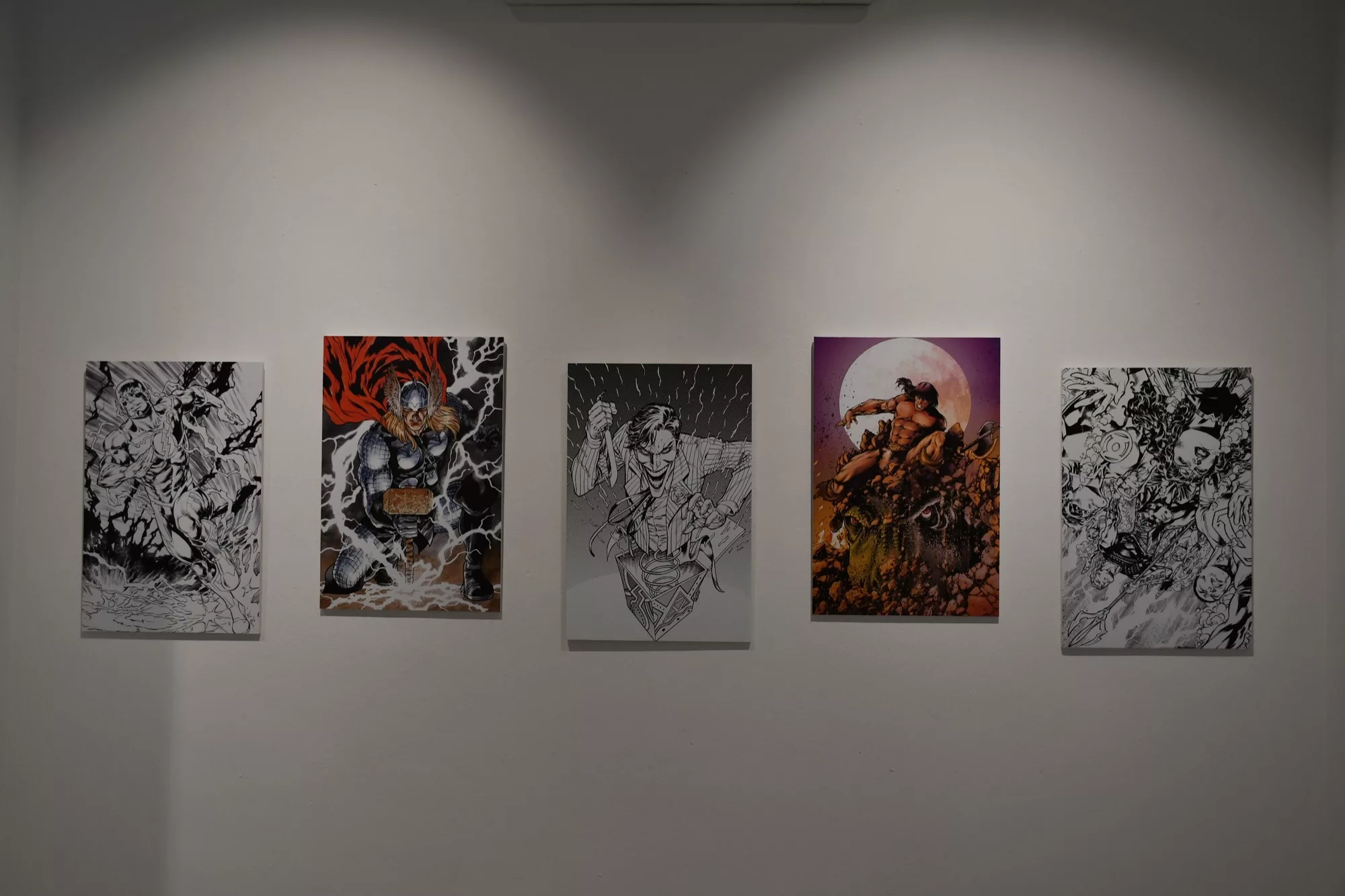 Por su parte el autor reconoció que desconoce el número exacto de obras porque hay muchas copias digitales “ya que los originales se suelen vender tras ser expuestos”, aunque apuntó que aproximadamente hay una quincena de originales. “Muchas obras son representativas de mi etapa en EE.UU, de JSA, de Superman, Flash Gordon, Wonder Woman…, muy representativas de mi carrera, y han hecho unas reproducciones bastante buenas”, añadió.
