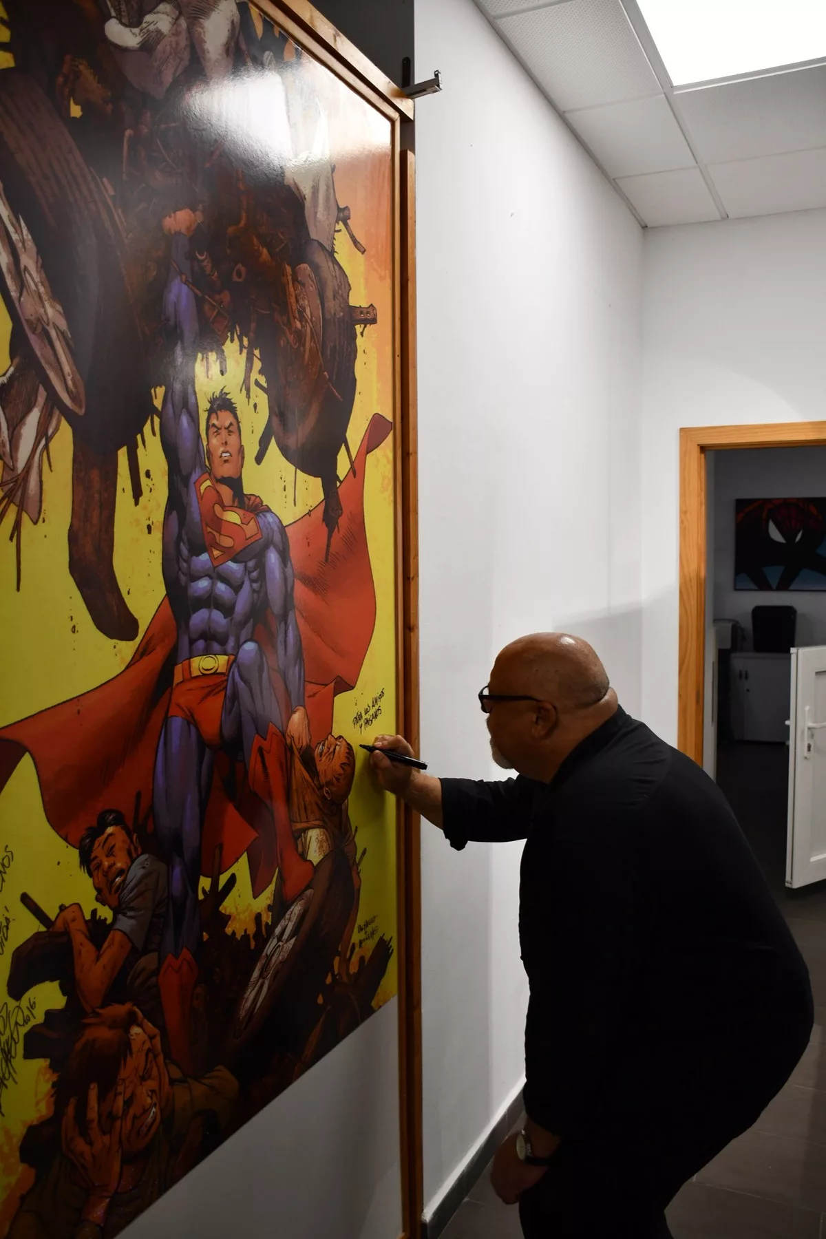 Al finalizar, Jesús Merino firmó el cómic a gran escala de Superman que él mismo entintó para Carlos Pacheco.