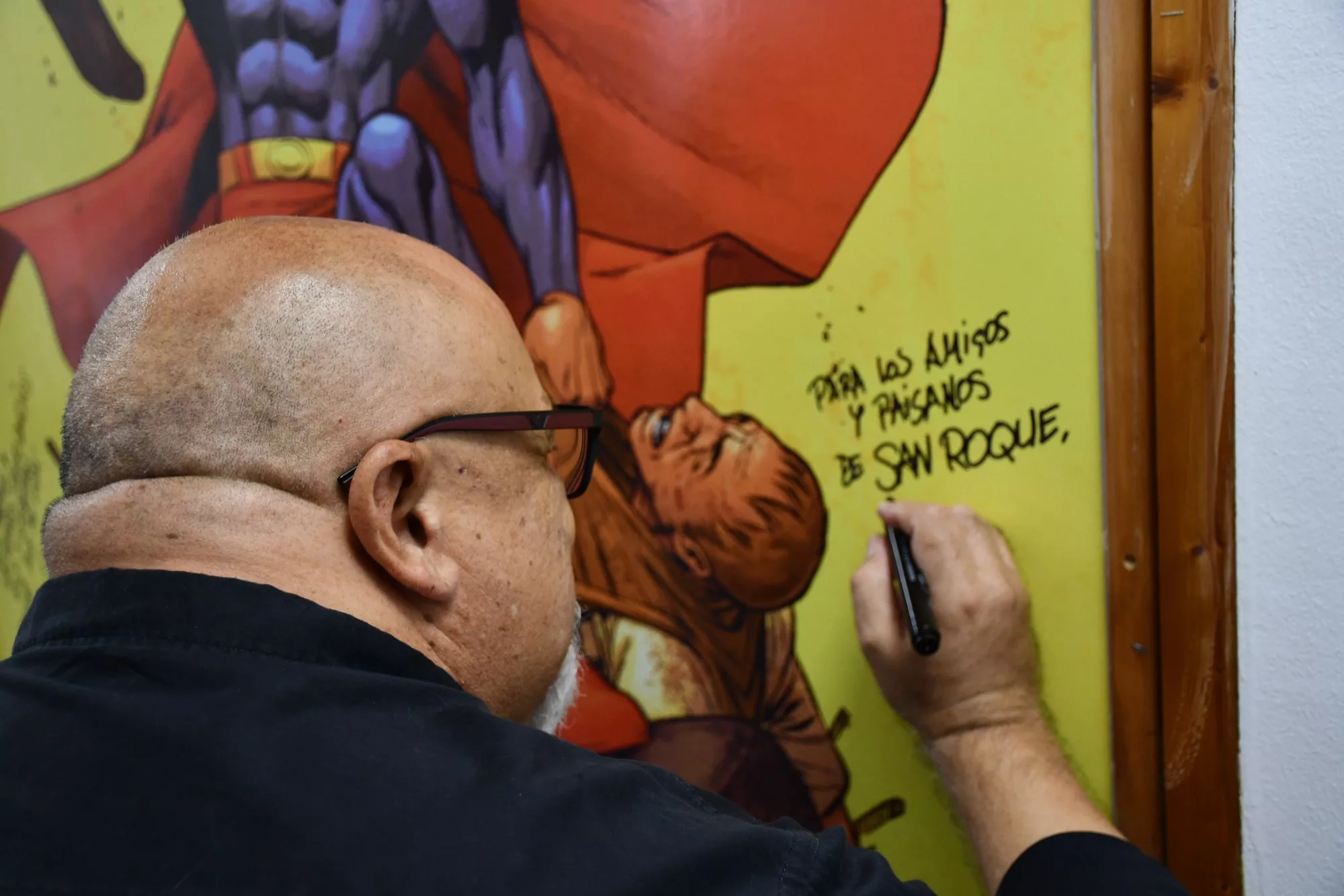 Una muestra del trabajo del dibujante e ilustrador jerezano Jesús Merino se puede disfrutar desde este lunes 4 de noviembre hasta el próximo 5 de diciembre en el Espacio Joven. Merino formó parte durante años del equipo del desaparecido dibujante internacional, el sanroqueño Carlos Pacheco. Hay que reseñar que esta muestra acaba de exponerse en el Salón del Cómic de Granada a principios de octubre de 2024, cuyo cartel ha sido obra del propio Merino. En la capital durante la misma fue visitado por el teniente de alcalde de juventud, David Ramos, donde además la delegación de juventud de San Roque, promocionó los 30 años de la Asociación del Cómic Mutantes Paseantes.