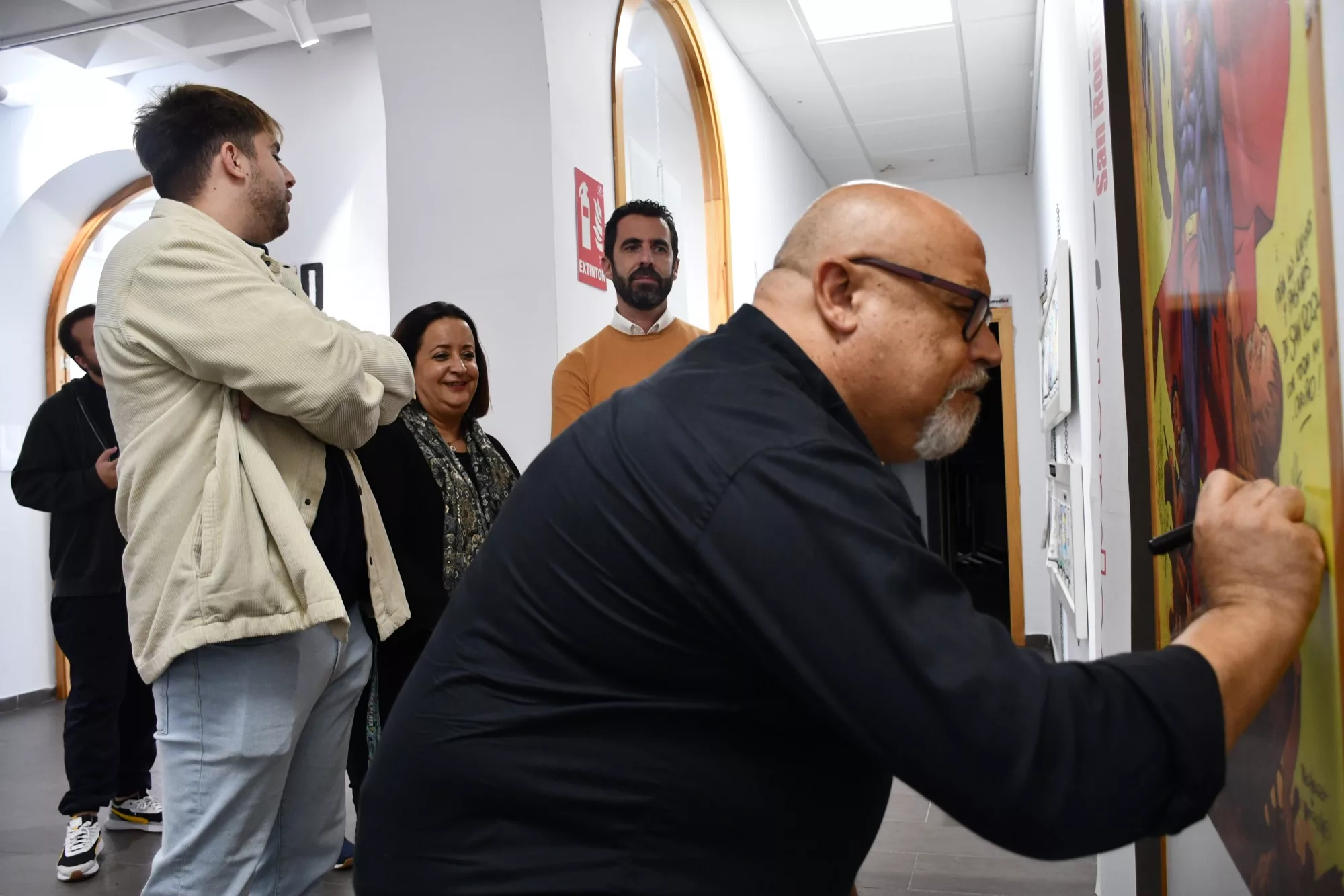 Jesús Merino se comprometió en esa muestra con el teniente de alcalde de Juventud, David Ramos, para exponer en San Roque la obra que precisamente mostró en la capital granadina.