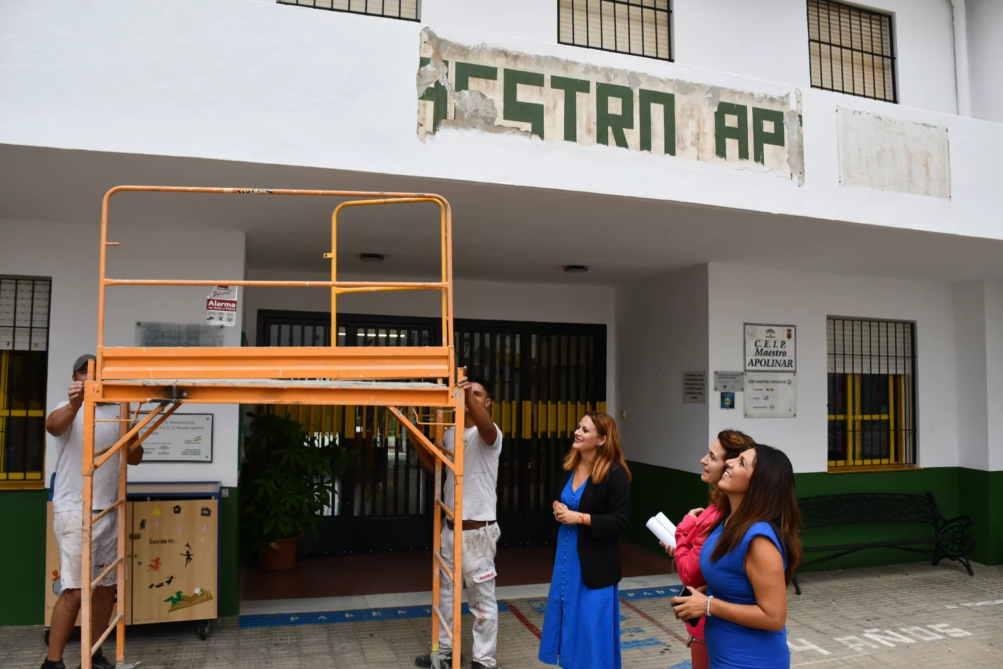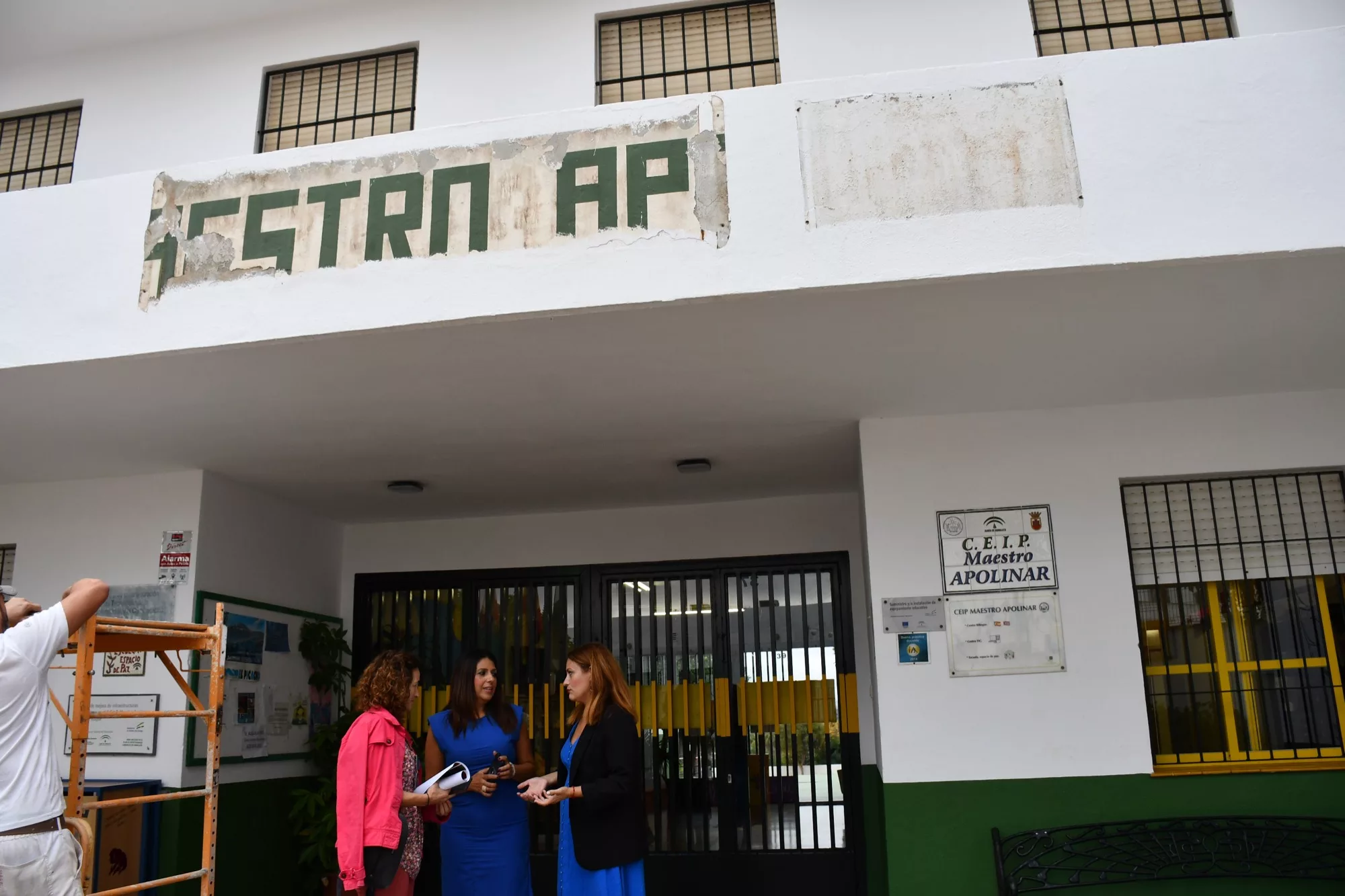 La teniente alcalde de Mantenimiento de Edificios Públicos, Belén Jiménez, junto a la teniente de alcalde de Educación, Mónica Córdoba, ha realizado una visita al colegio Maestro Apolinar en San Roque Casco, donde se están efectuando trabajos de pintura. Momento que ha aprovechado Jiménez para arremeter contra la Junta de Andalucía por su falta de inversiones en los centros educativos del municipio.