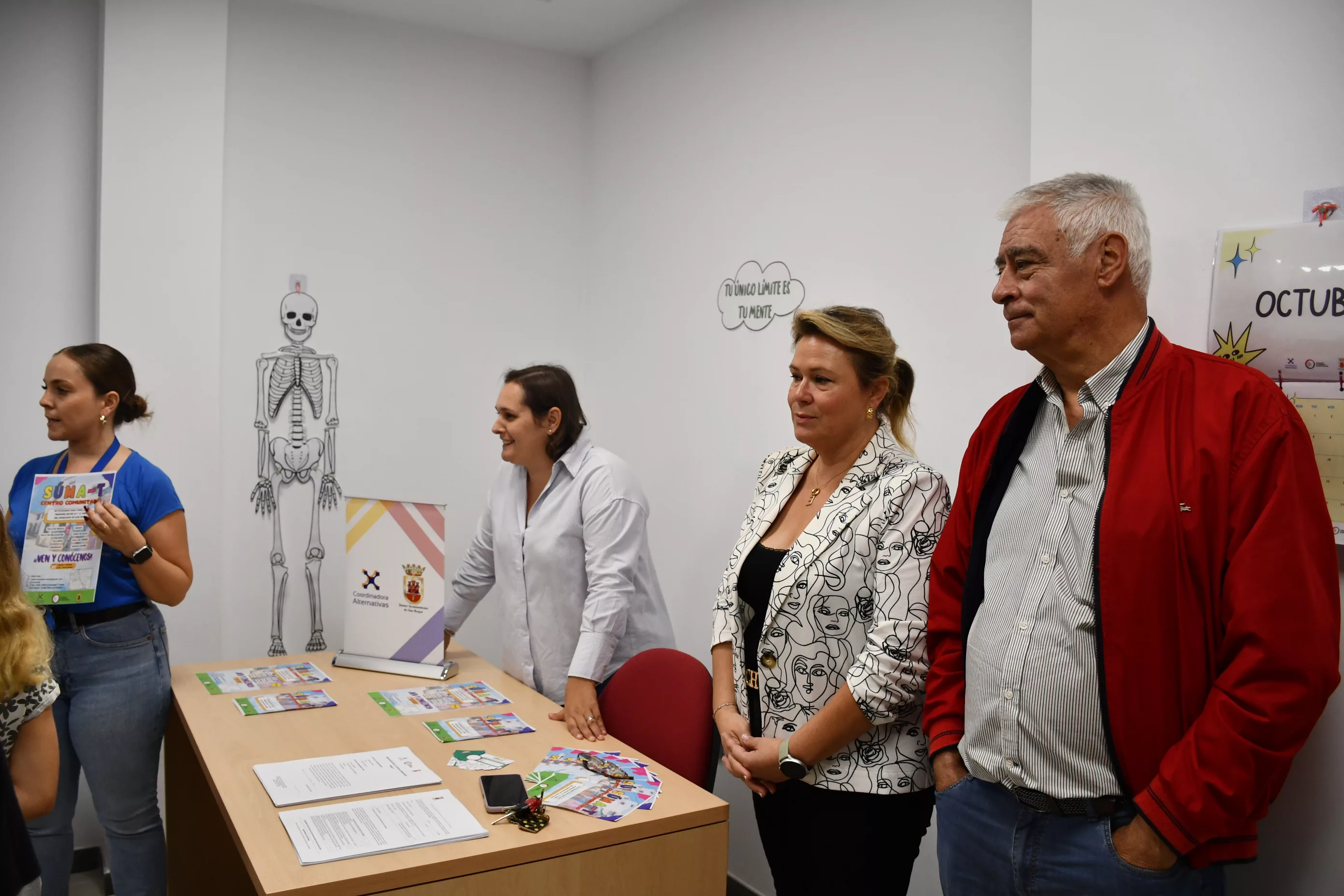 La concejal delegada de Bienestar Social, Eva Gil, y el presidente de la Coordinadora Alternativas, Francisco Mena, junto a las monitoras, han recibido a la veintena de alumnos de sexto de primaria del CEIP Gloria Fuertes que han conocido el programa comunitario Súma-T que se desarrolla jueves y viernes de 16:00 a 20:00 horas y es totalmente gratuito.