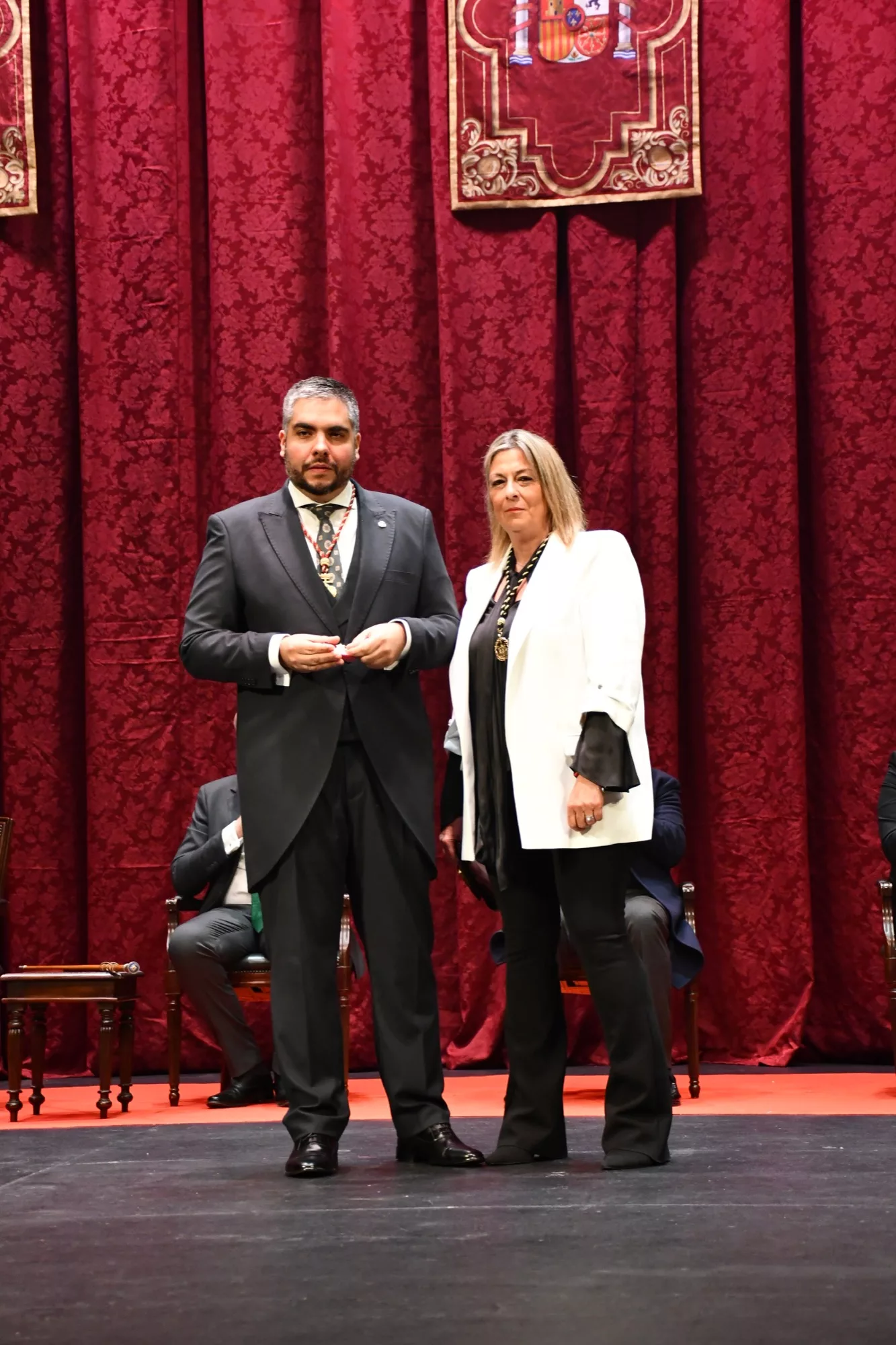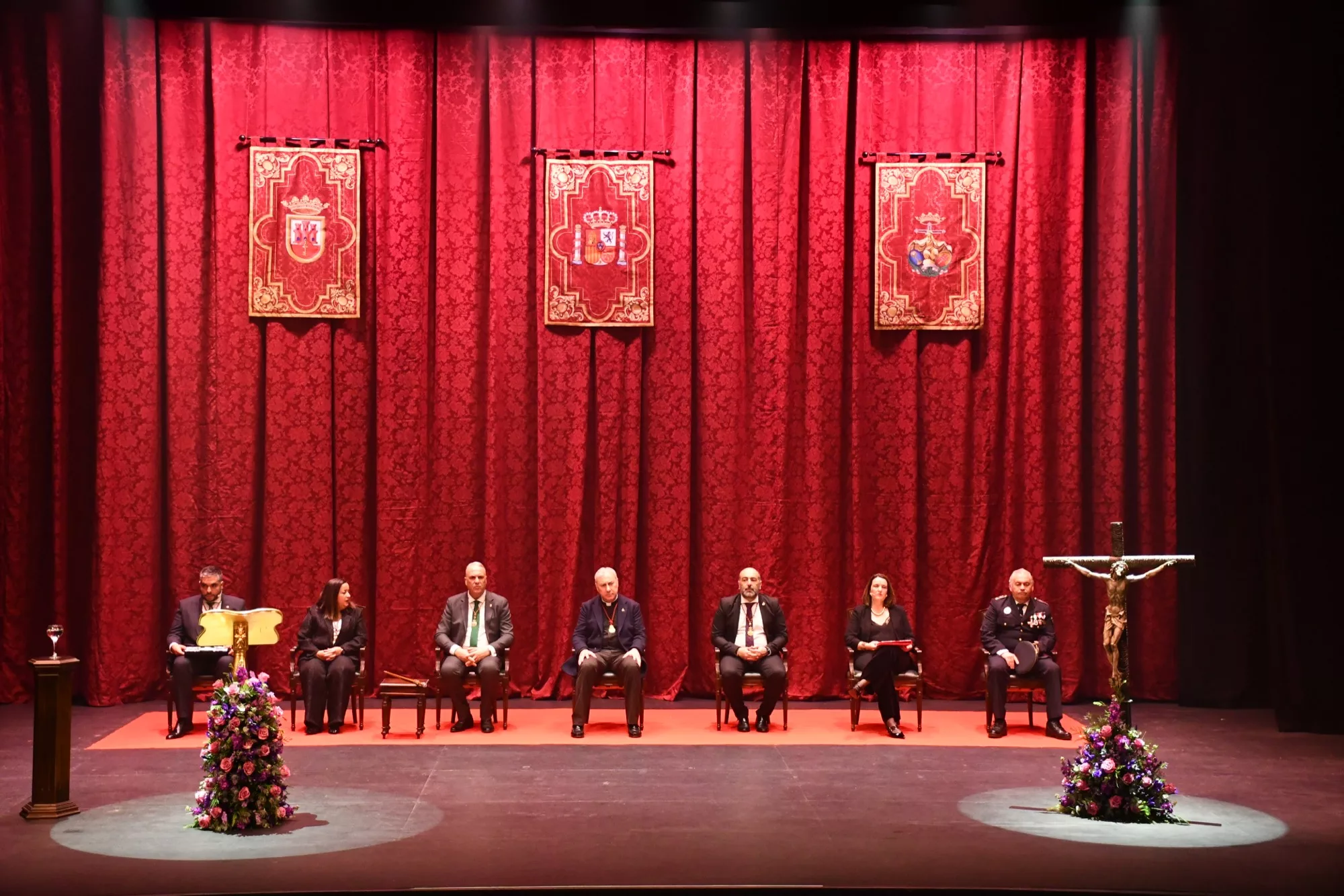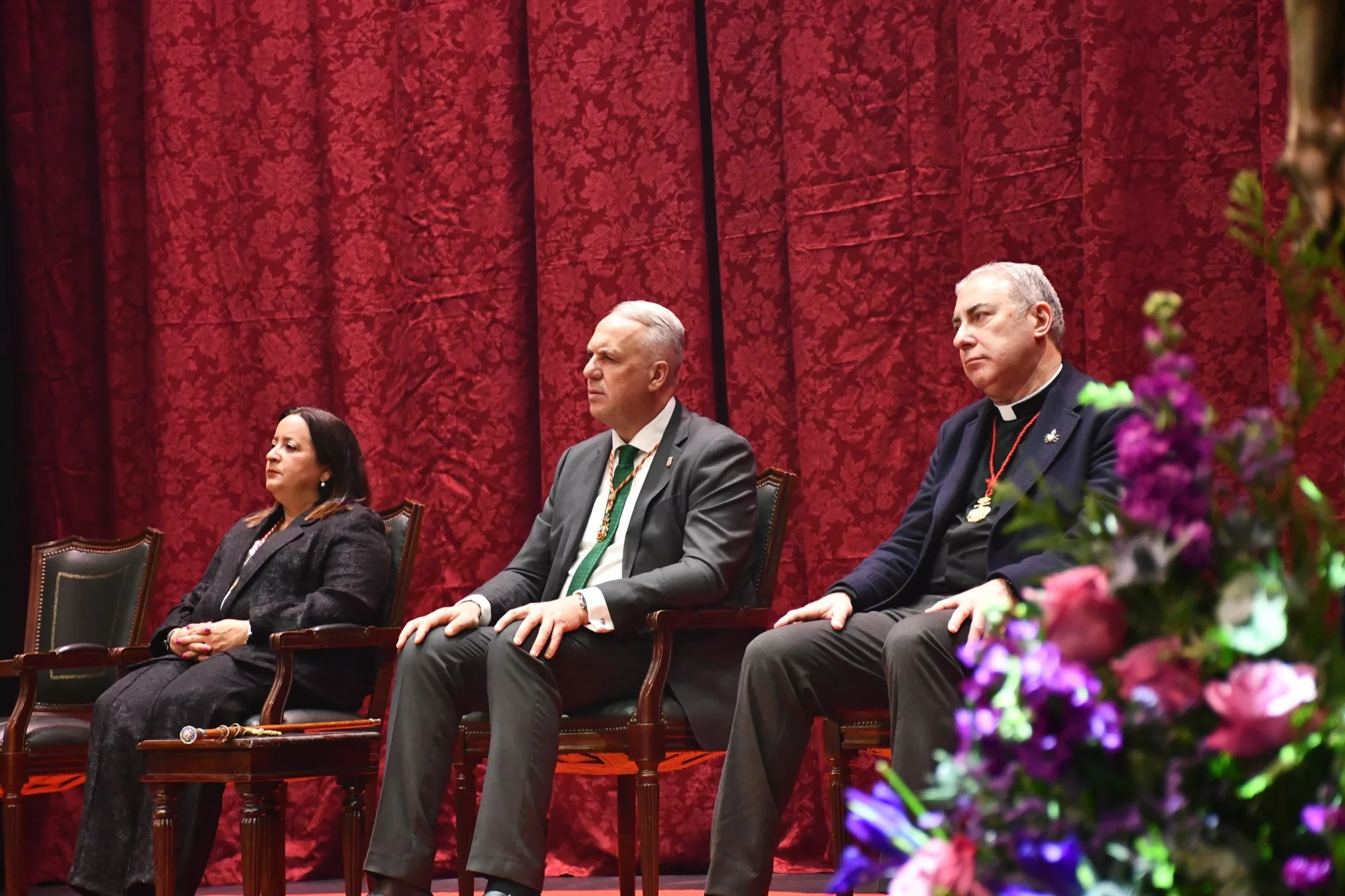 El alcalde, Juan Carlos Ruiz Boix, la teniente de alcalde de Tradiciones, María del Mar Collado, y otros miembros de la Corporación asistieron al acto, así como el actual presidente del Consejo Local de Hermandades y Cofradías, José Luis Perales, miembros de la Junta Permanente de dicho órgano y representantes del mundo cofrade sanroqueño. También se contó con la presencia de autoridades, tanto civiles como militares, entre ellos, la coordinadora de la Administración General del Estado, Esperanza Pérez, y el subdelegado de la Junta de Andalucía en el Campo de Gibraltar, Francisco Javier Ros.
