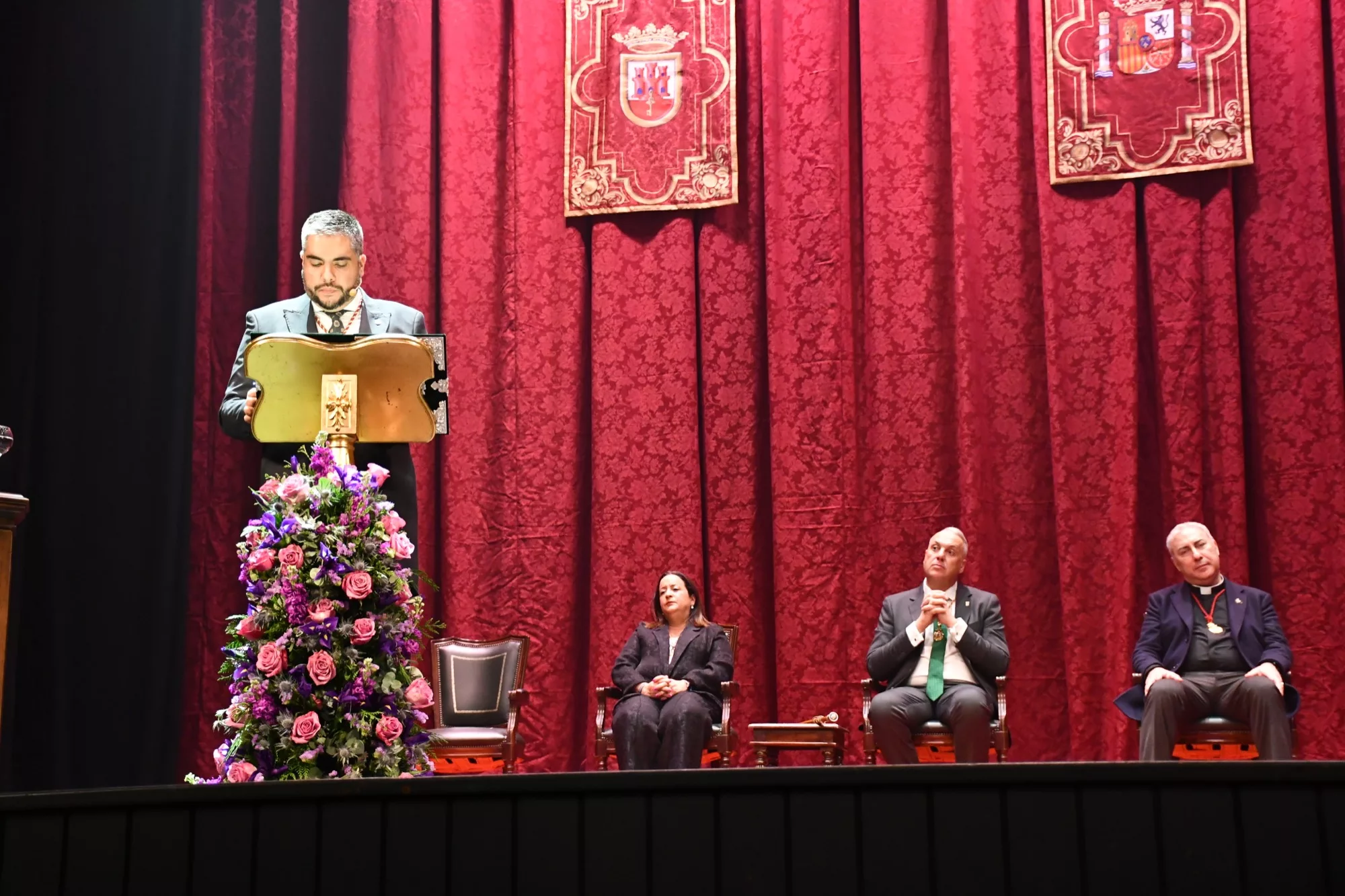 El ex presidente del Consejo Local de Hermandades y Cofradías, Juan Angulo Ledesma, ha pronunciado este sábado el Pregón Oficial de la Semana Santa 2025, un acto que se desarrolló en el Teatro Juan Luis Galiardo y al que asistieron numerosos representantes del mundo cofrade sanroqueño así como autoridades municipales. Angulo contó con el acompañamiento musical de la Banda Sinfónica Amando Herrero de Algeciras, que interpretó tres marchas procesionales y el himno de España.