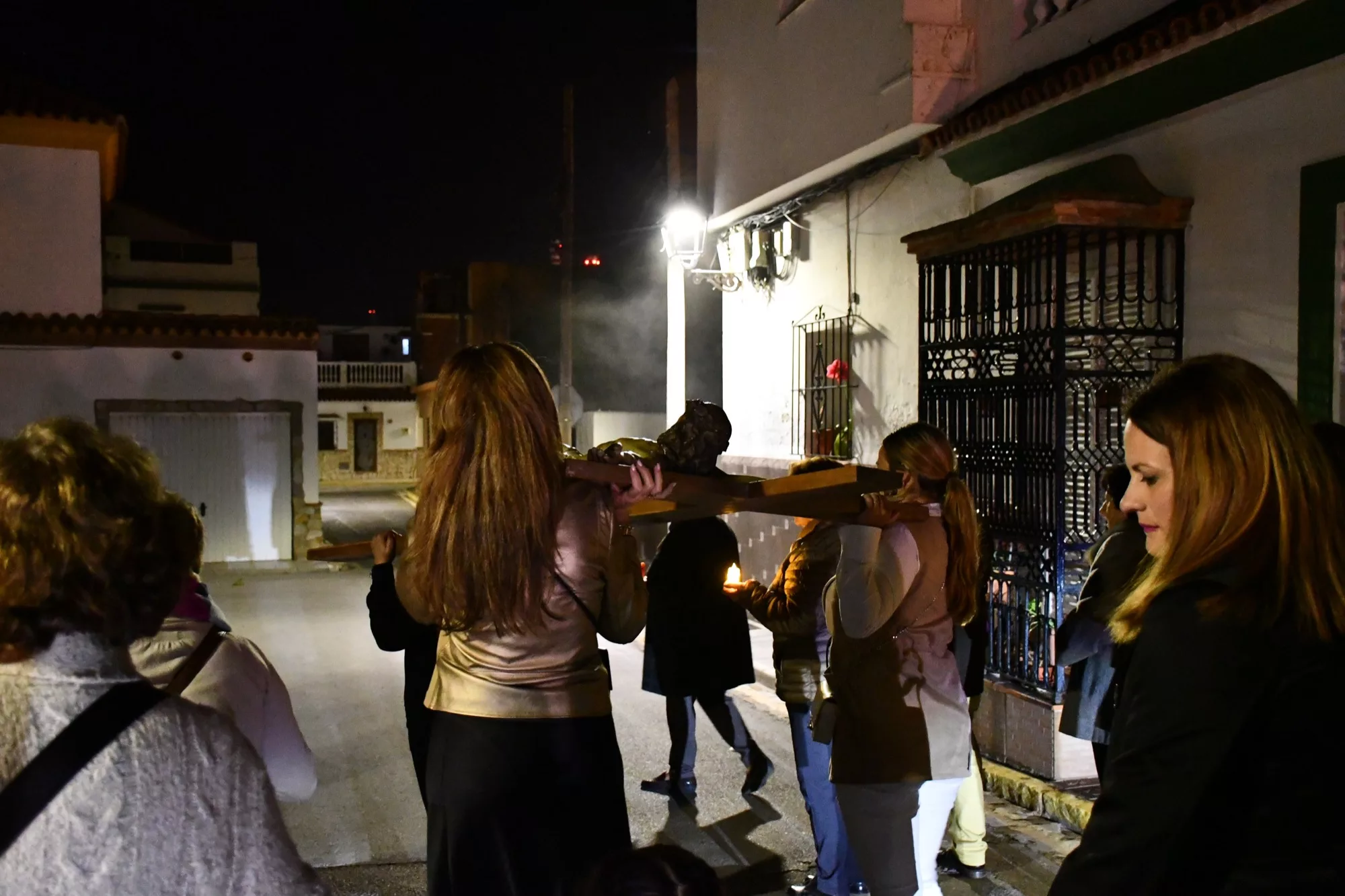 En primer lugar, se celebró una eucaristía en la Parroquia de San Hiscio. Posteriormente, a las 23.00 horas los fieles han acompañado a la imagen del Cristo por el recorrido previsto, con el siguiente itinerario: calle Joaquín Costa, Plaza de la Constitución, calle Constitución, Cervantes, Almadraba, Avenida La Colonia, Pi y Margall, Avenida del Mar y llegada a la parroquia, donde se concluye con una oración.